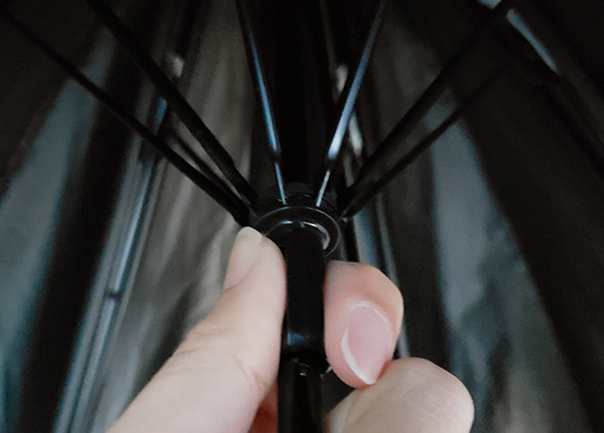 傘の「ろくろ」部分には、開閉時に指をはさみにくくネイルを傷つけにくい「安全カバー」を採用しています。開閉時の不安を解消してくれ、安心して開閉ができます。