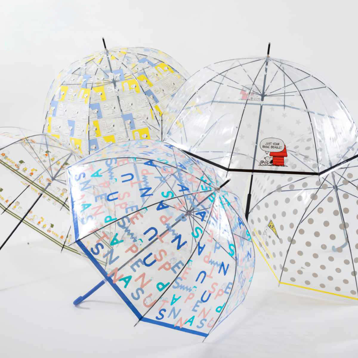 幅広い世代に愛されるキャラクター、スヌーピーが描かれたクリアアンブレラです。派手すぎない可愛いデザインで、雨の日も気分が上がります。