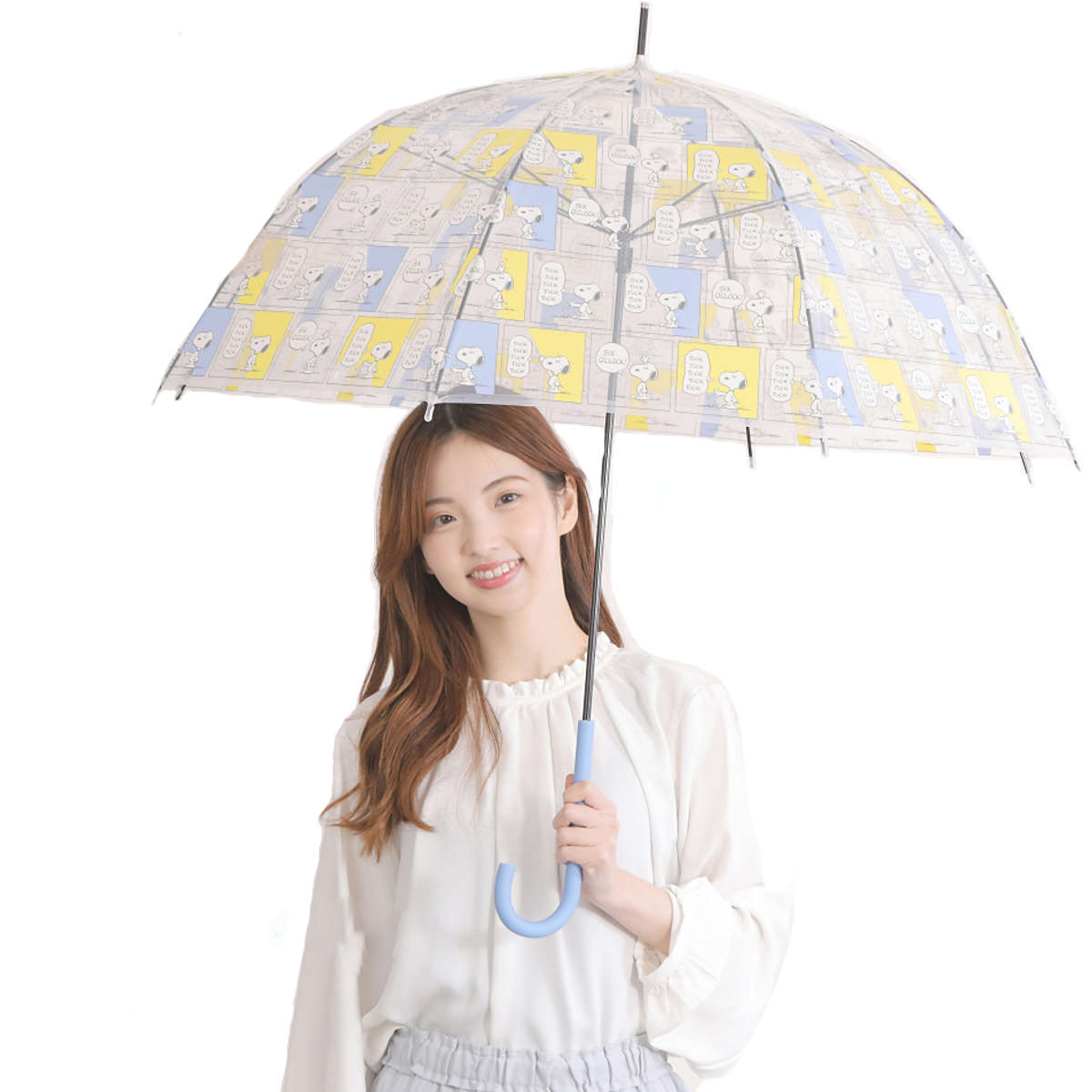 クリア素材を使用しているため、周囲の視界が遮られず、雨の日でも安心して歩けます。機能性に加え、傘越しに広がる風景や、傘をさしながらでもスヌーピーのデザインを楽しめるのも魅力のひとつです。