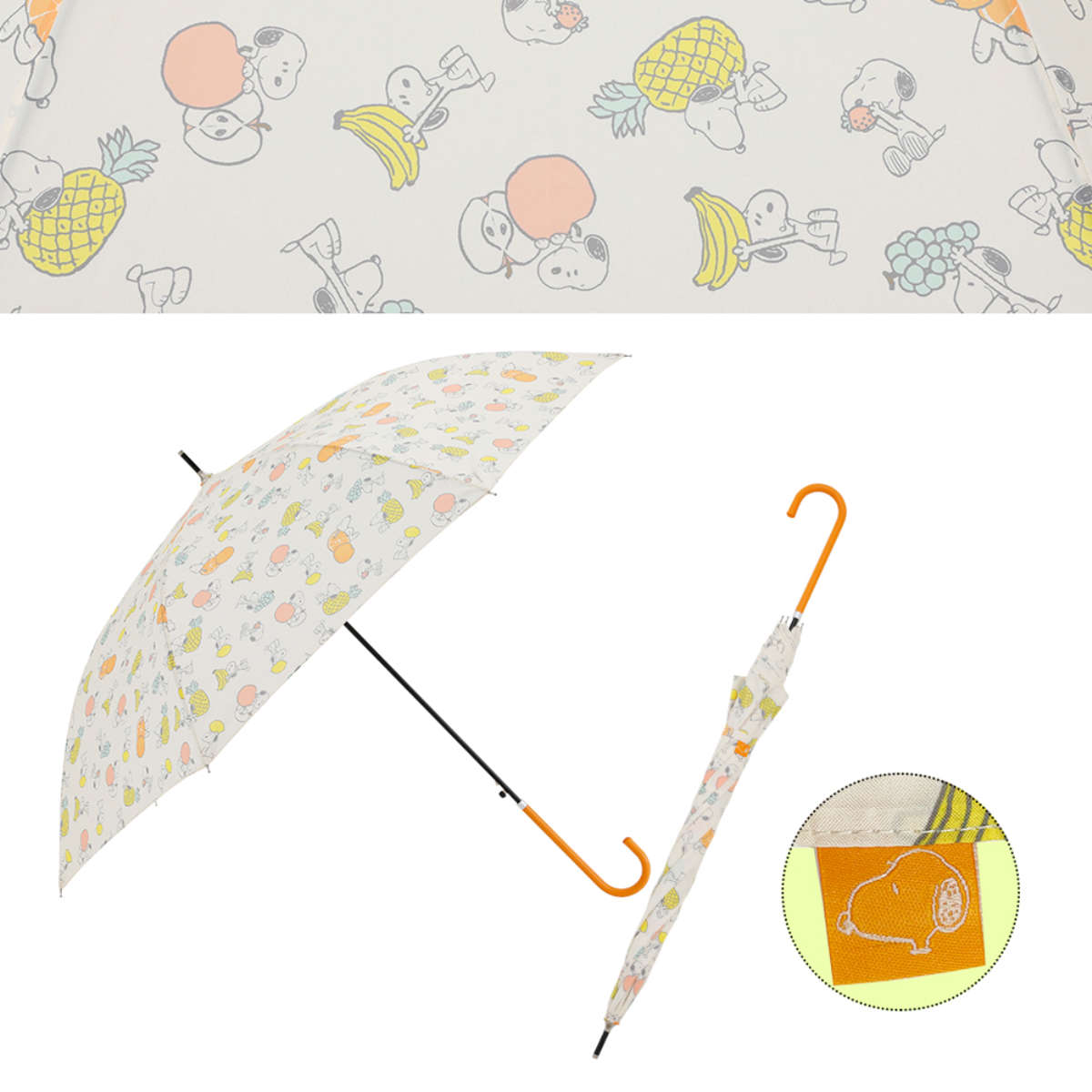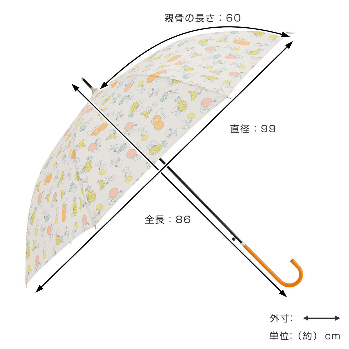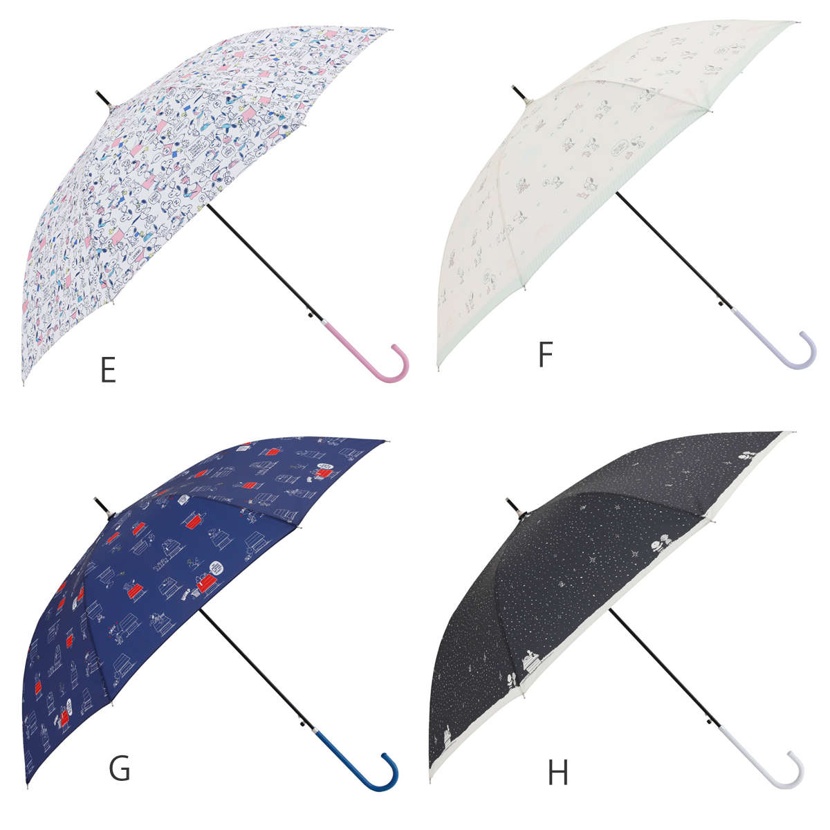 幅広い世代に愛されるキャラクター、スヌーピーが描かれた長傘です。主張しすぎない持ちやすいデザインで、雨の日も気分が上がります。