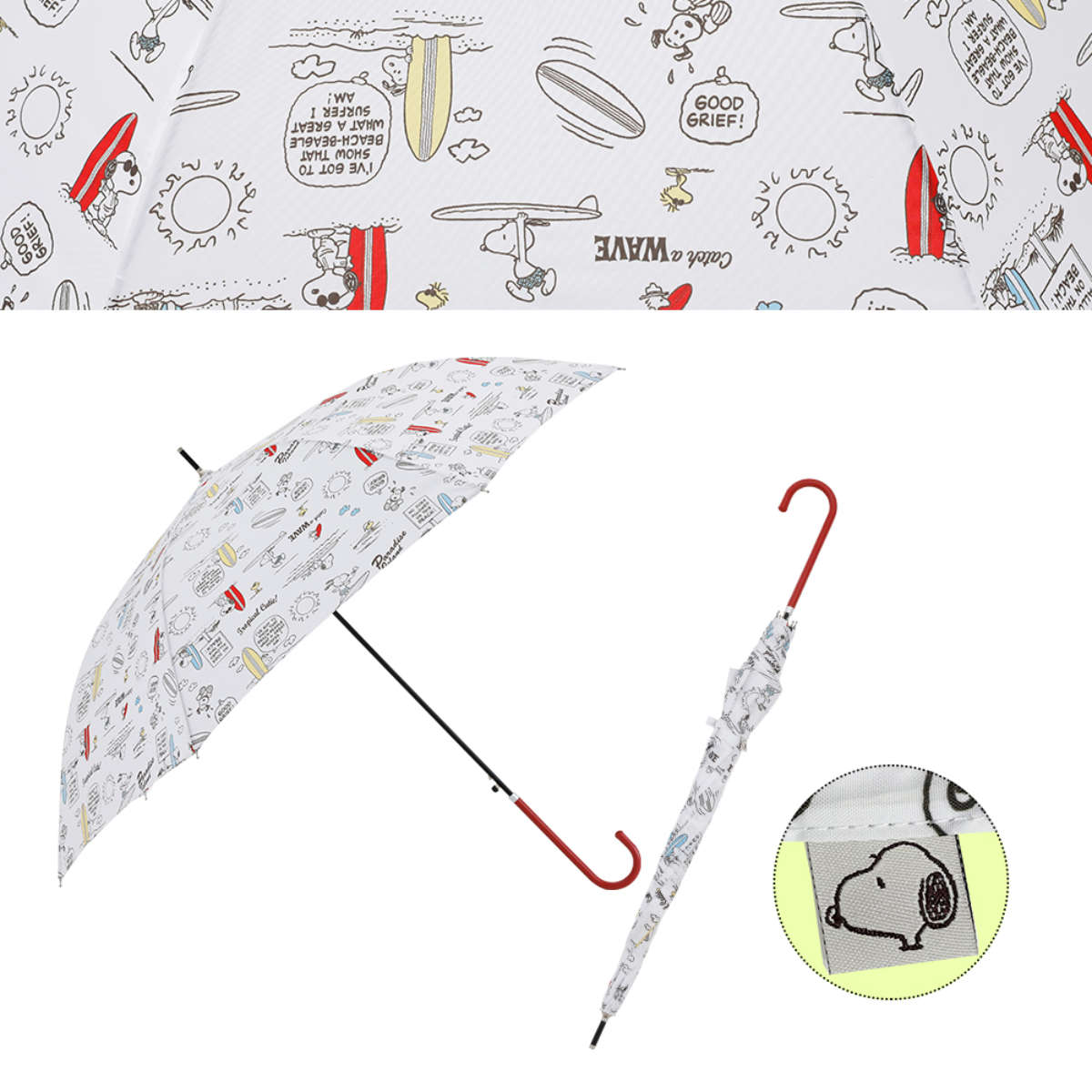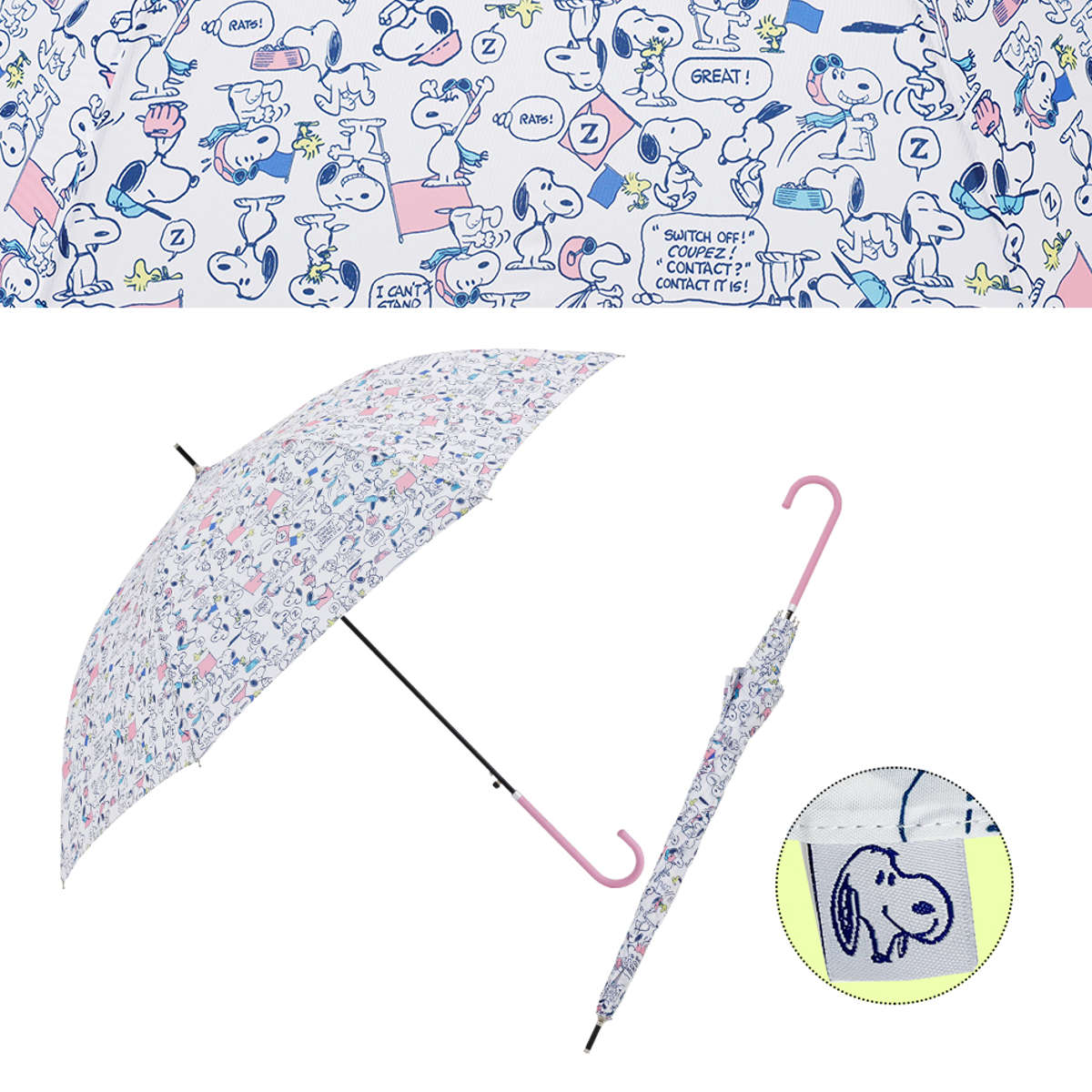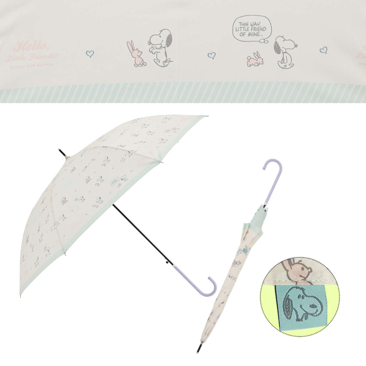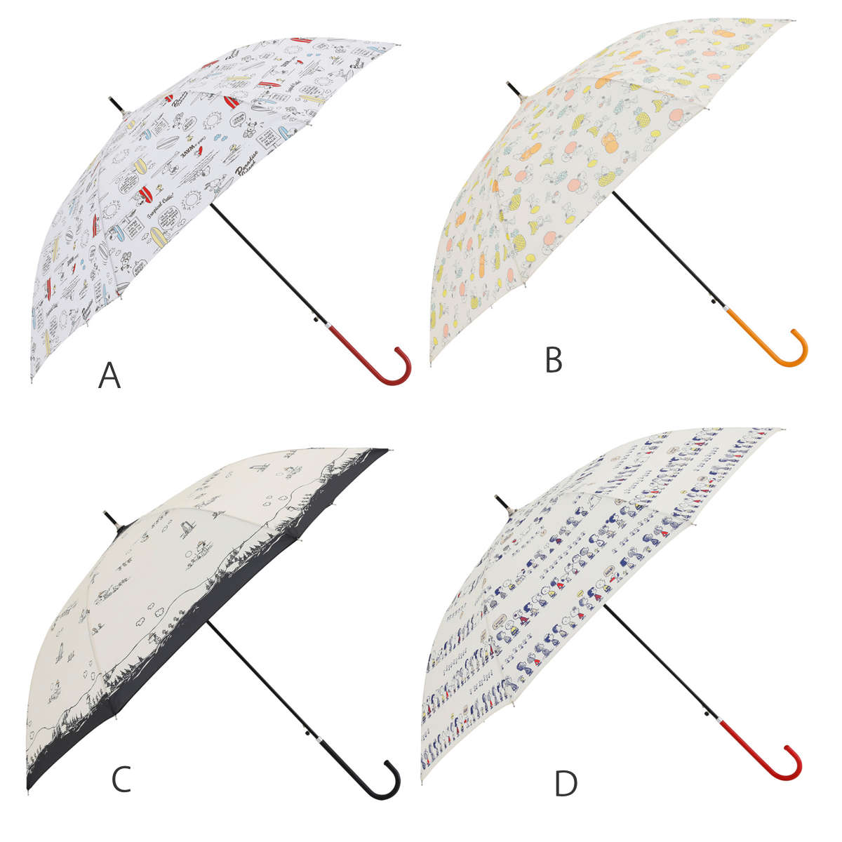 幅広い世代に愛されるキャラクター、スヌーピーが描かれた長傘です。主張しすぎない持ちやすいデザインで、雨の日も気分が上がります。