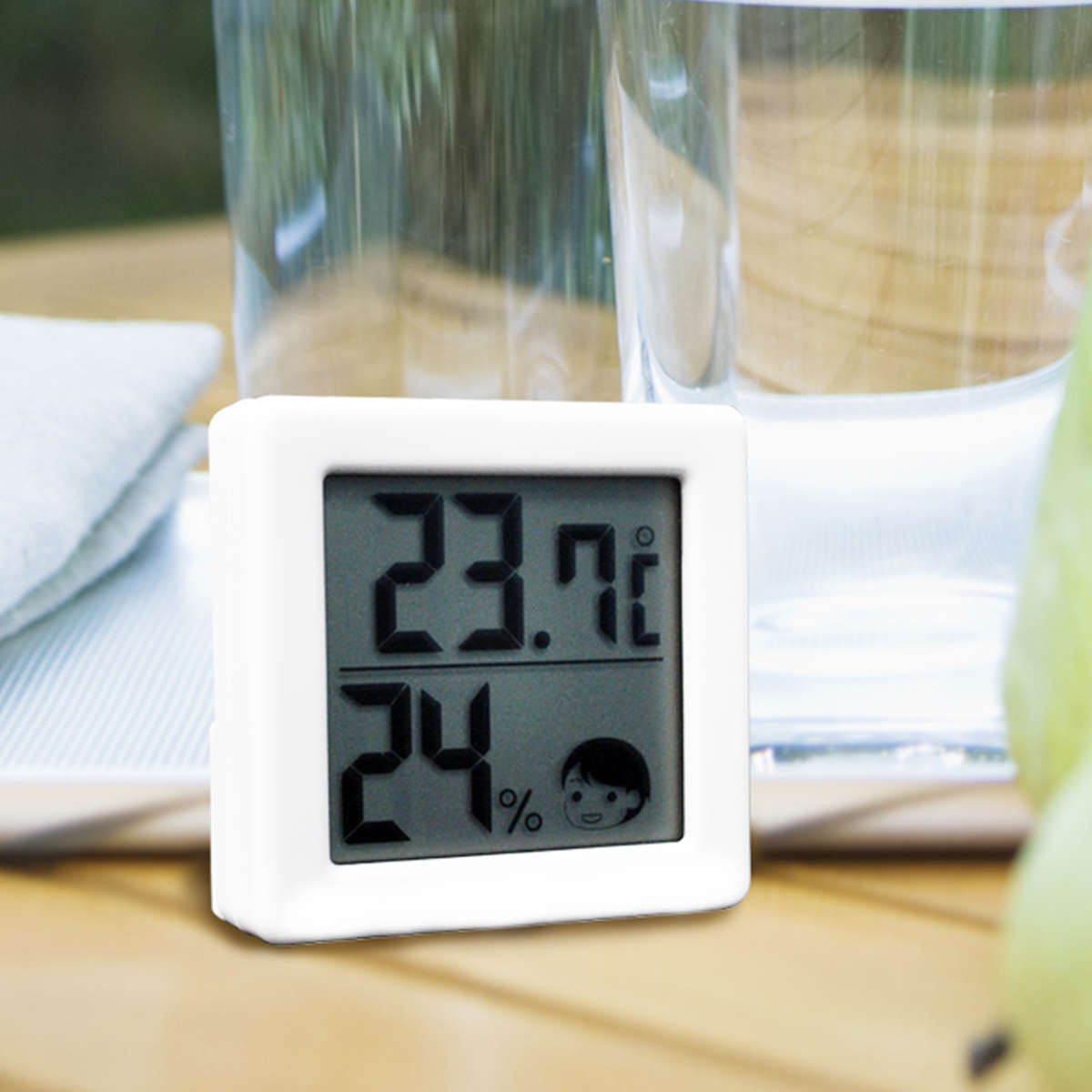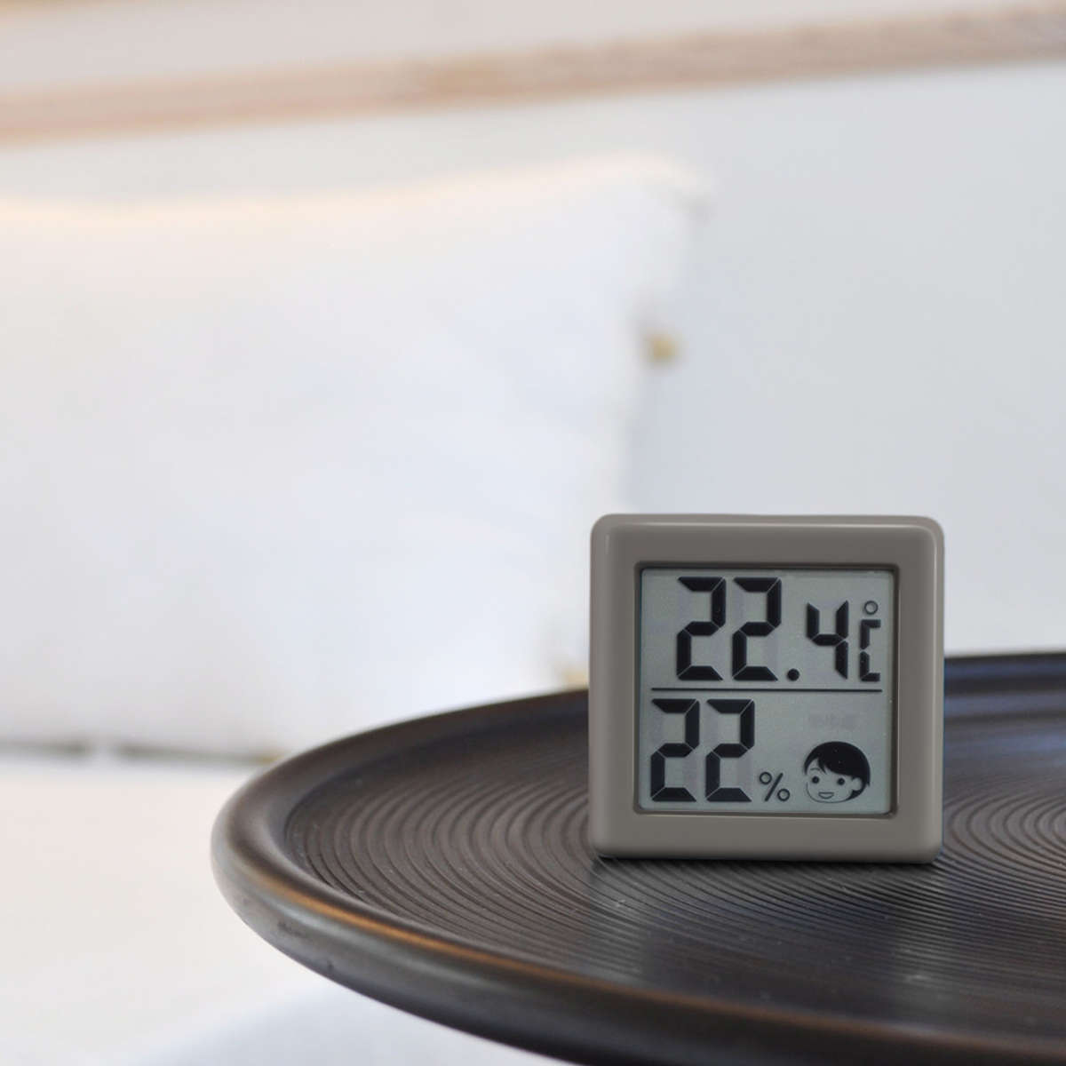 表情や文字で危険度をチェック コンパクトな温湿度計