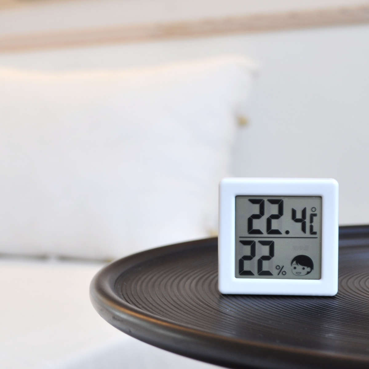 熱中症の危険度の目安や冬場の乾燥対策に、一部屋に一台は備えておきたい温湿度計です。ベッドサイドやデスクなど、手元にも置きやすいサイズ感が魅力です。