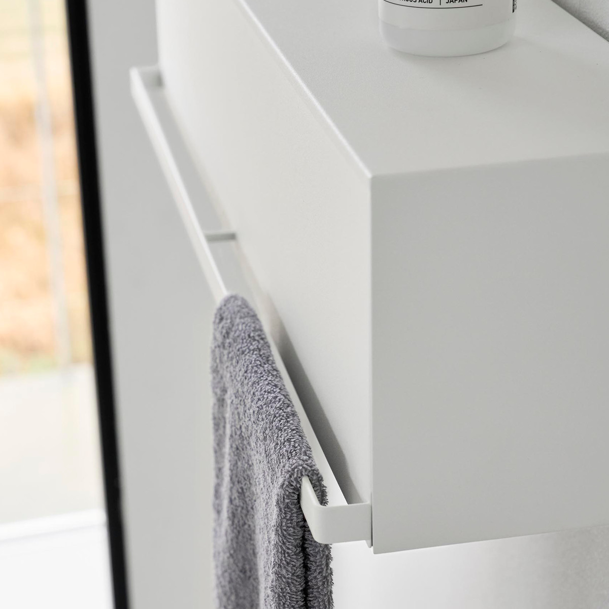 扉のバーにタオルを掛けてタオルハンガーとして使用できます。