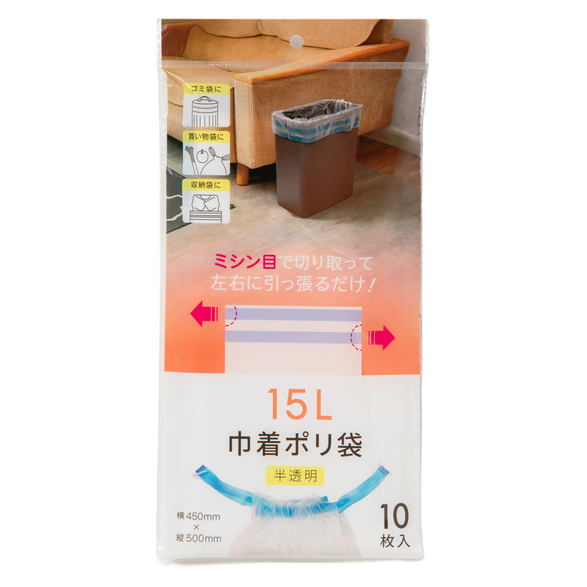 室内ペールのゴミ袋として、また収納袋、買い物袋としてもお使いいただけます。色は中身が確認しやすい半透明です。出張や旅行時の小物・衣類の整理にもぴったりな15Lサイズです。