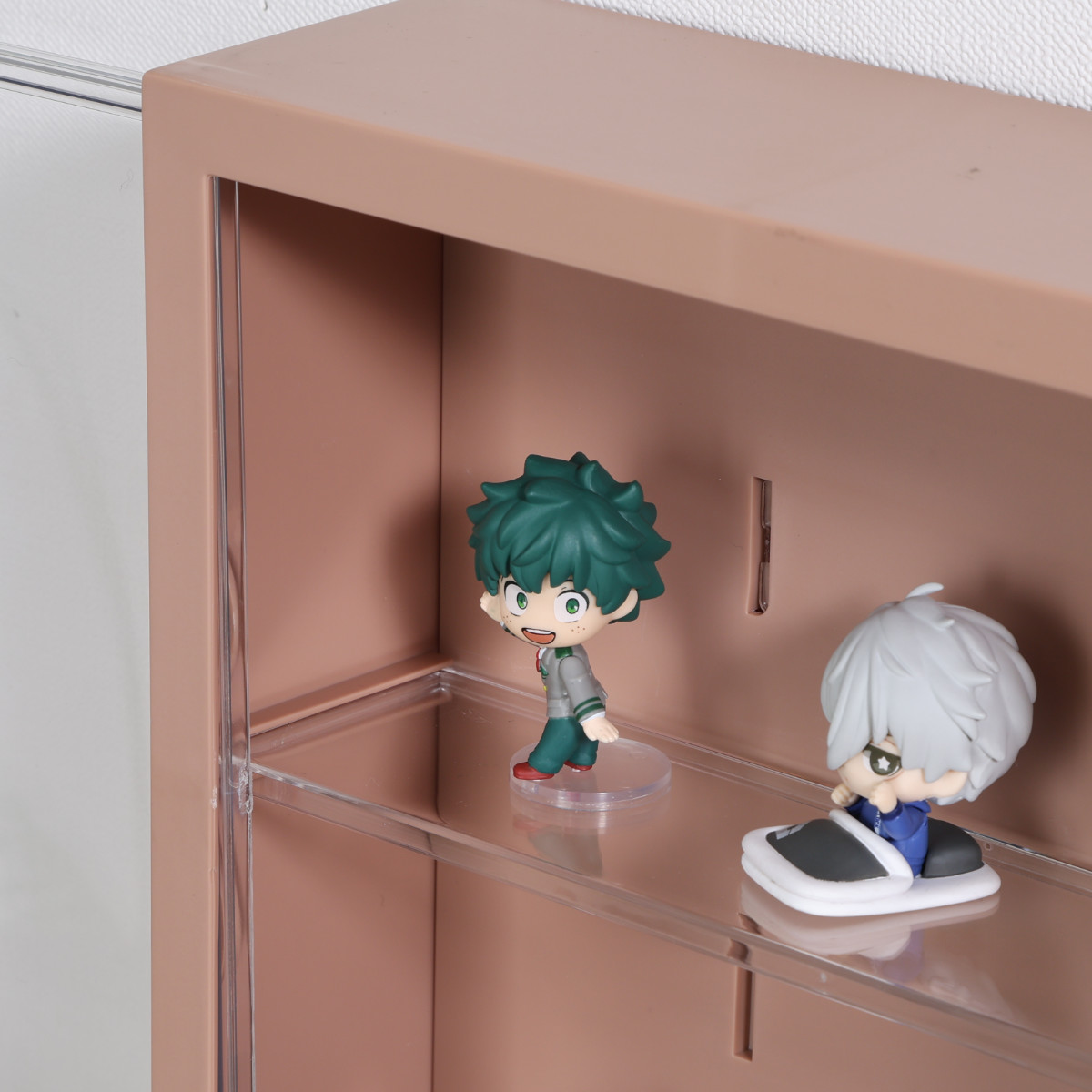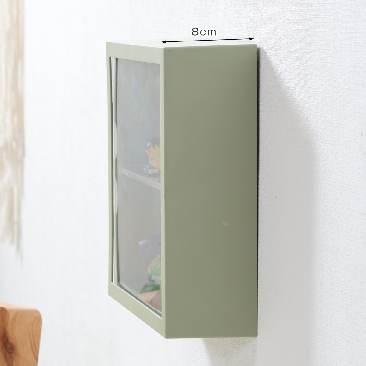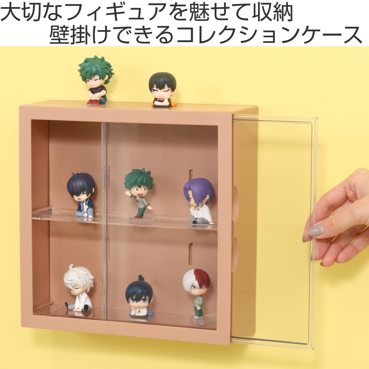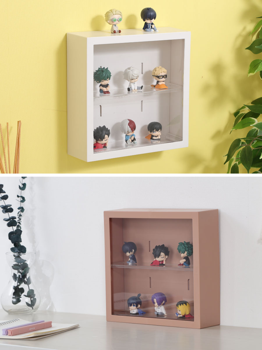 お気に入りのフィギュアや、カプセルトイの景品、推し活グッズなどの小さなコレクションを飾りながら、傷や汚れから保護もできるケースです。壁掛けタイプなので、置き場所に限りがあるお部屋でも、デッドスペースを有効に使うことができます。