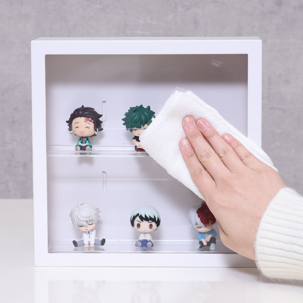 透明カバーでホコリを防ぎながら、見せる収納として楽しめます。汚れが気になる時はケースを柔らかい布で優しく拭き取ることで簡単にお手入れができ、清潔感を保てます。