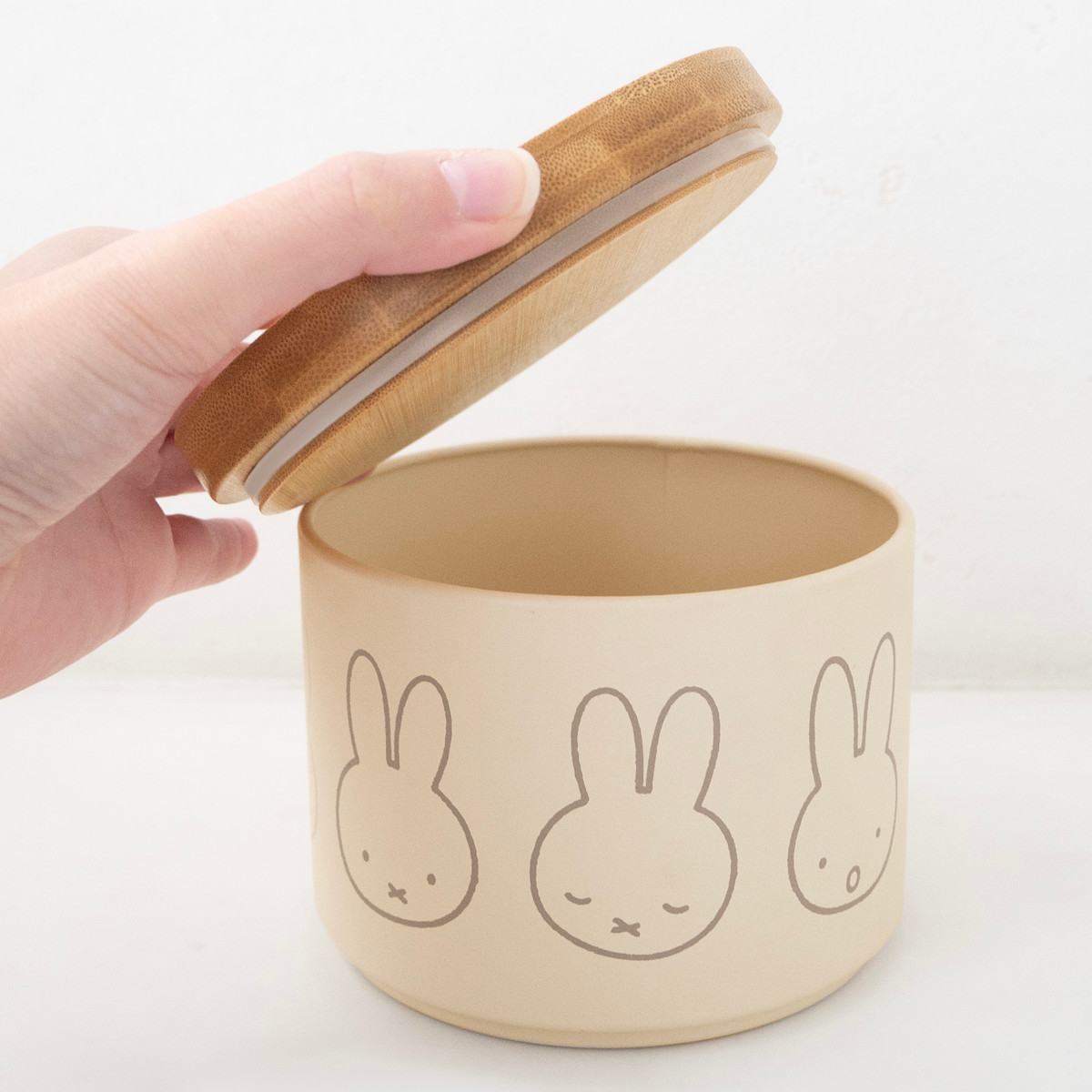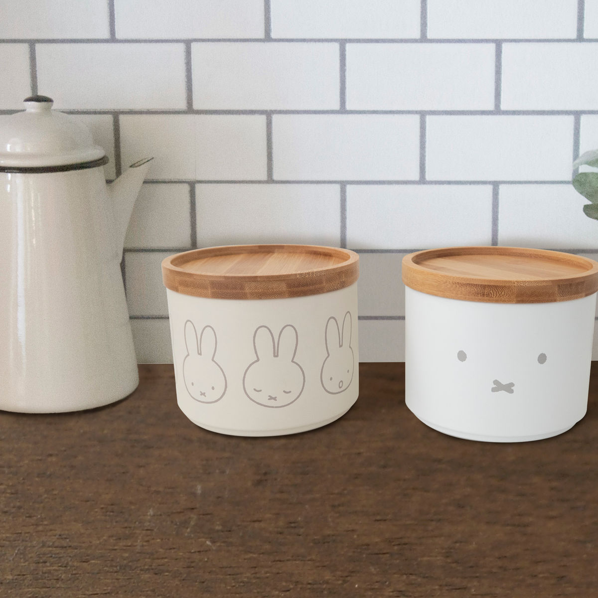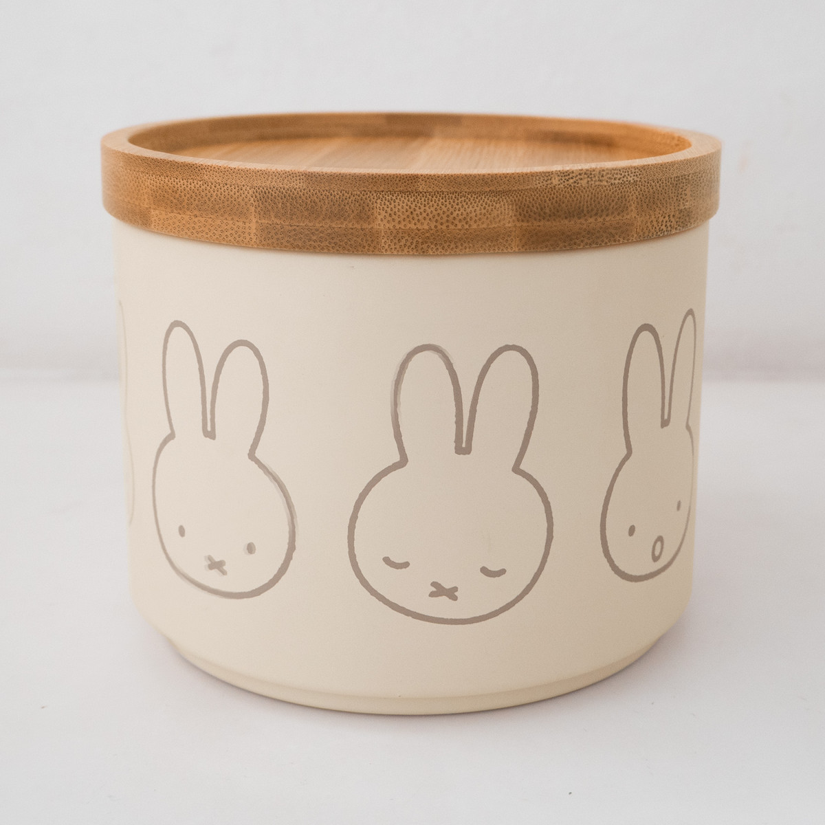 可愛いミッフィーがデザインされたフタ付きのキャニスターです。個包装されたクッキーやキャンディーなどのお菓子、コーヒー豆や砂糖などを保存しておくのにピッタリです。
