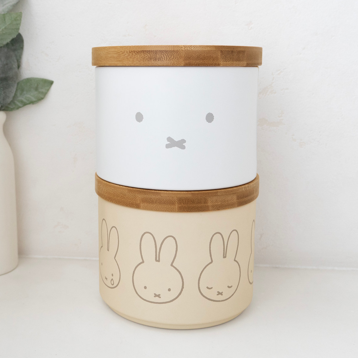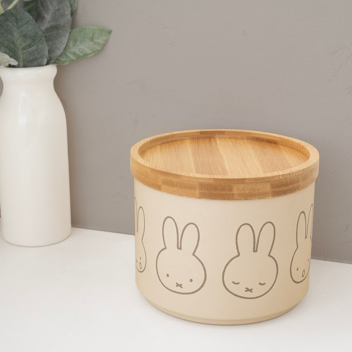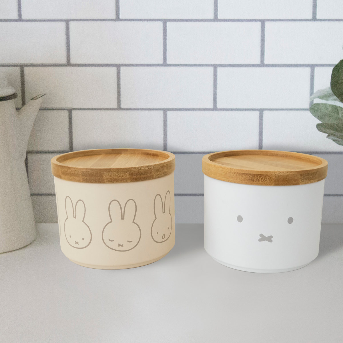 可愛いミッフィーがデザインされたフタ付きのキャニスターです。個包装されたクッキーやキャンディーなどのお菓子、コーヒー豆や砂糖などを保存しておくのにピッタリです。