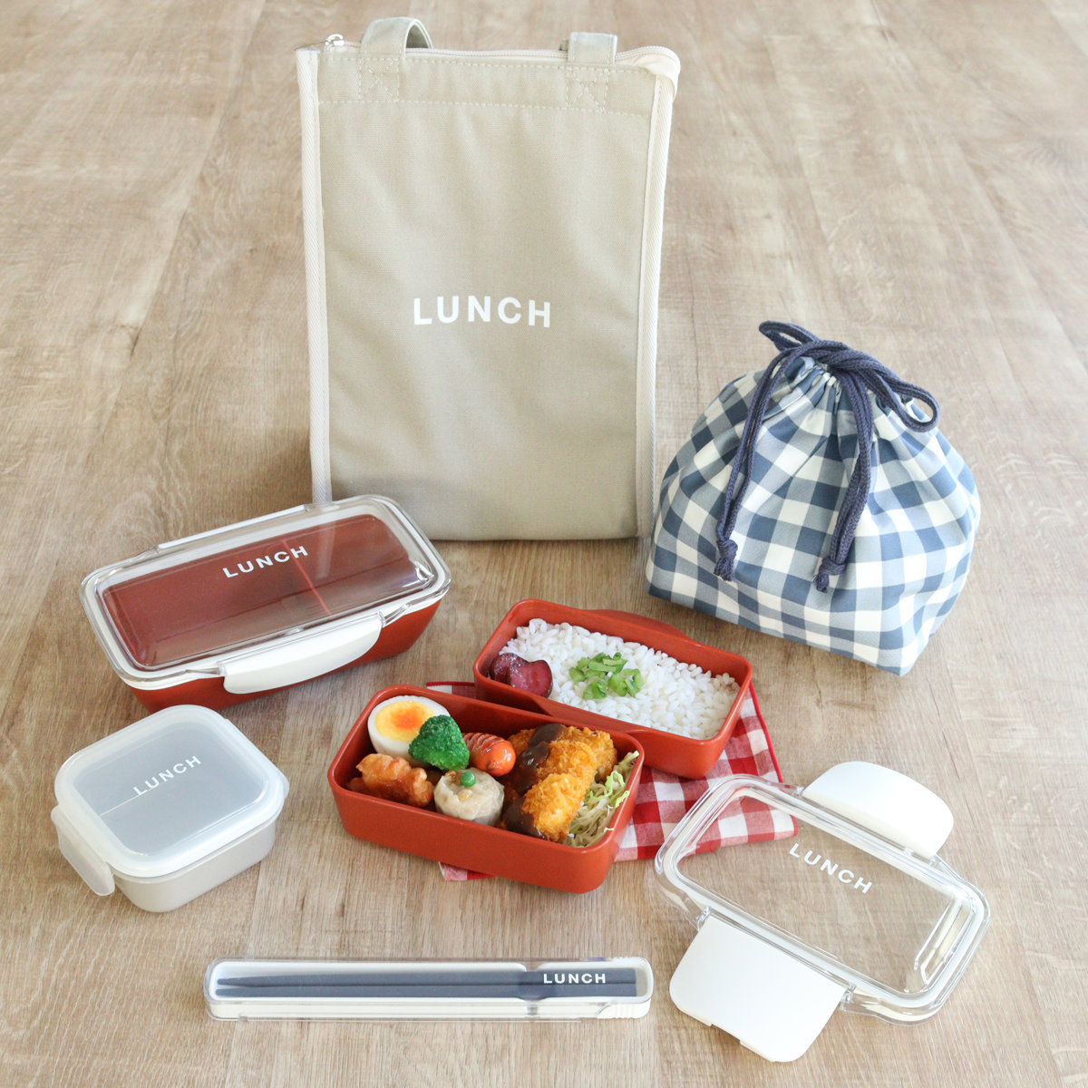 ベーシックなデザインで使いやすいと人気の「time for LUNCH」シリーズには、同じ柄のランチクロスや組み合わせやすいシンプルなカラーのお弁当箱や箸箱がそろっています。