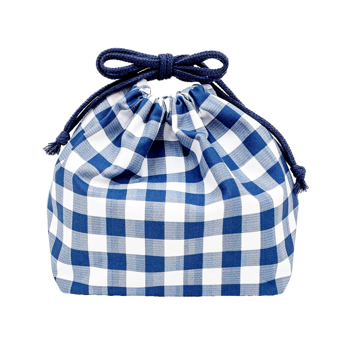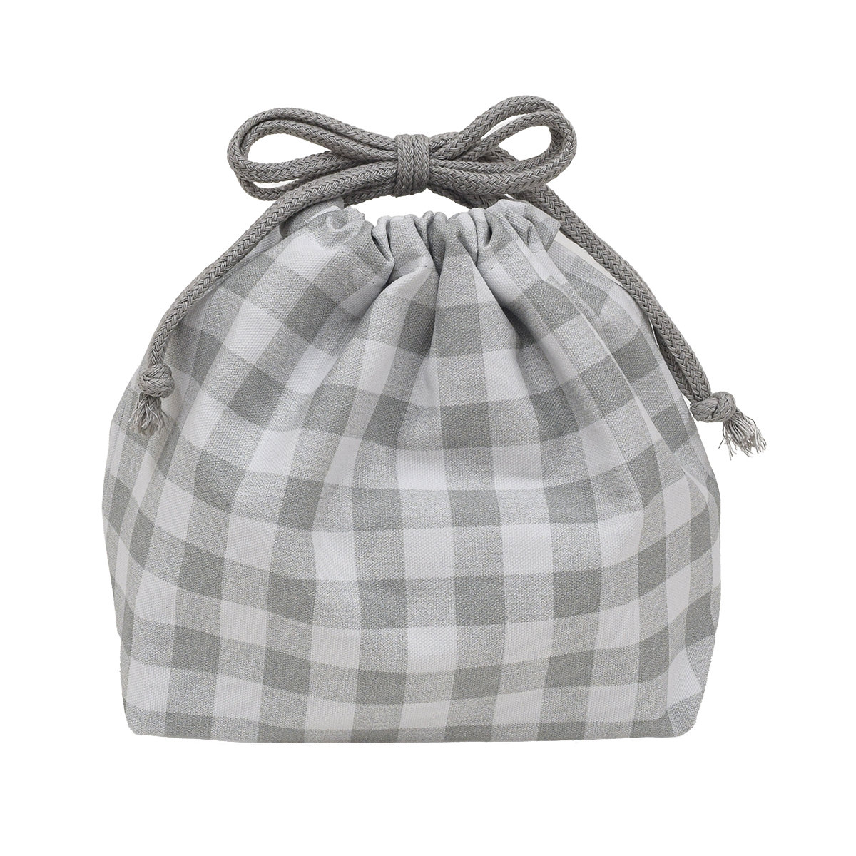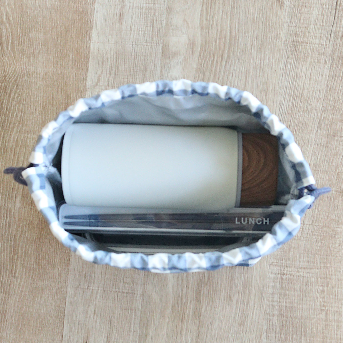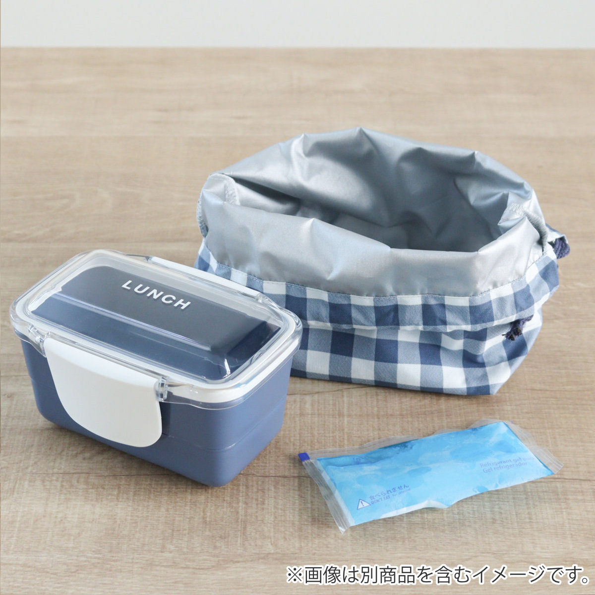 お子さまから大人まで使えるチェック柄が人気のシンプルなランチ巾着です。内側は保冷をサポートするシルバーコーディングが施されているので、保冷剤と一緒に使えば、夏場のお弁当も安心して持ち運べます。