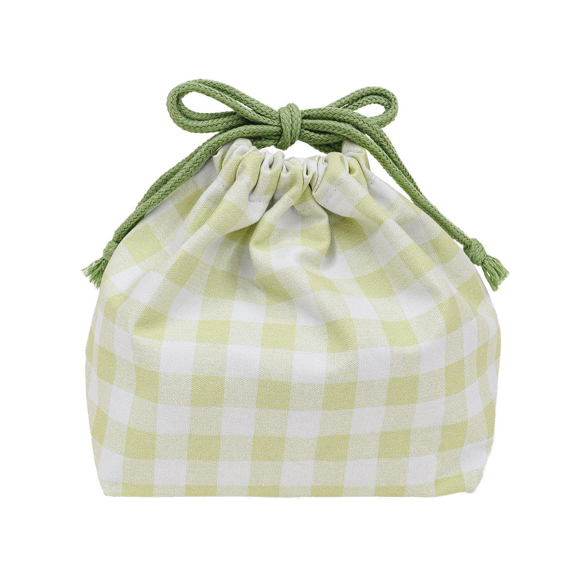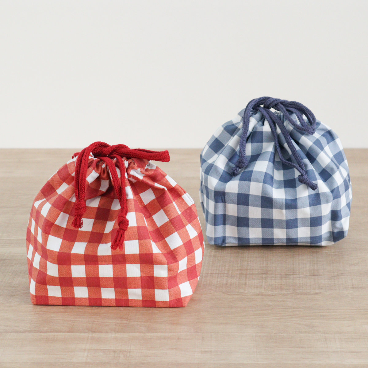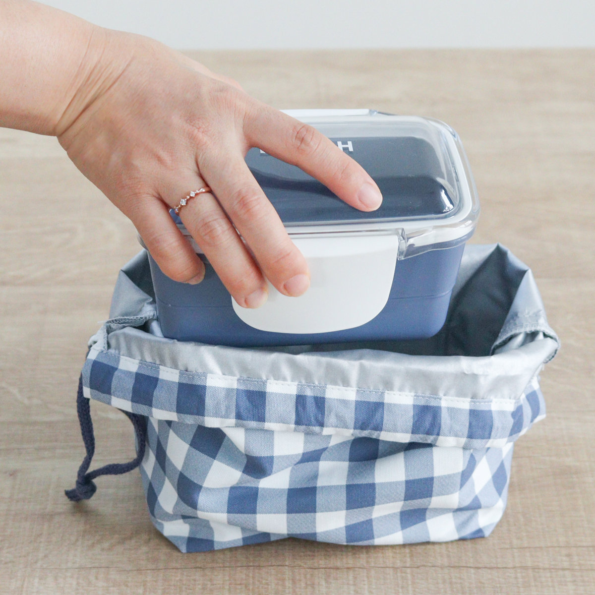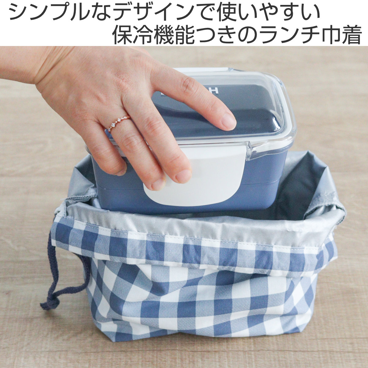 お子さまから大人まで使えるチェック柄が人気のシンプルなランチ巾着です。内側は保冷をサポートするシルバーコーディングが施されているので、保冷剤と一緒に使えば、夏場のお弁当も安心して持ち運べます。