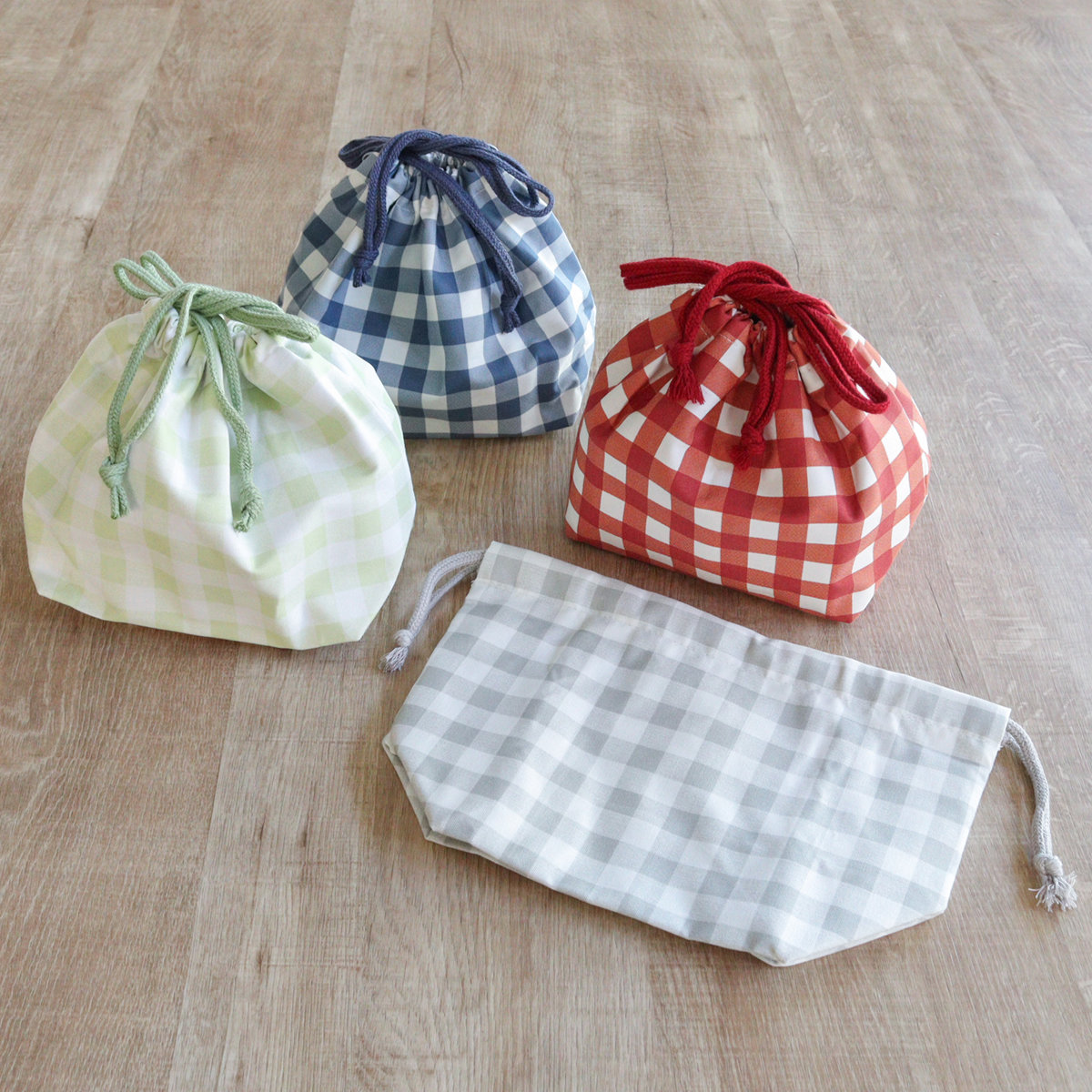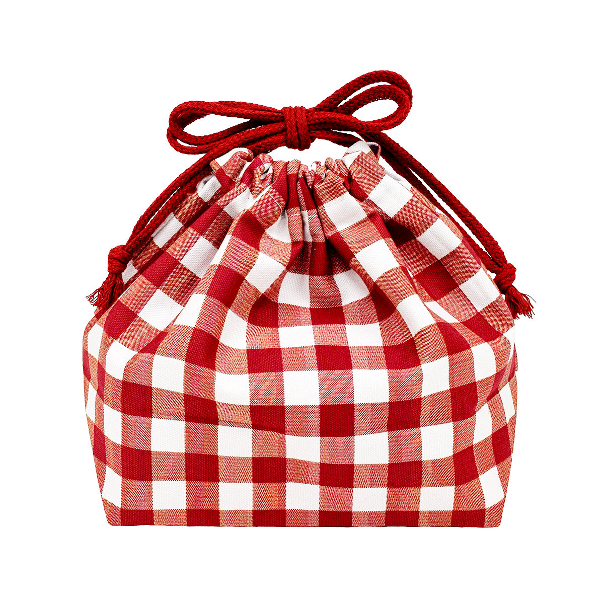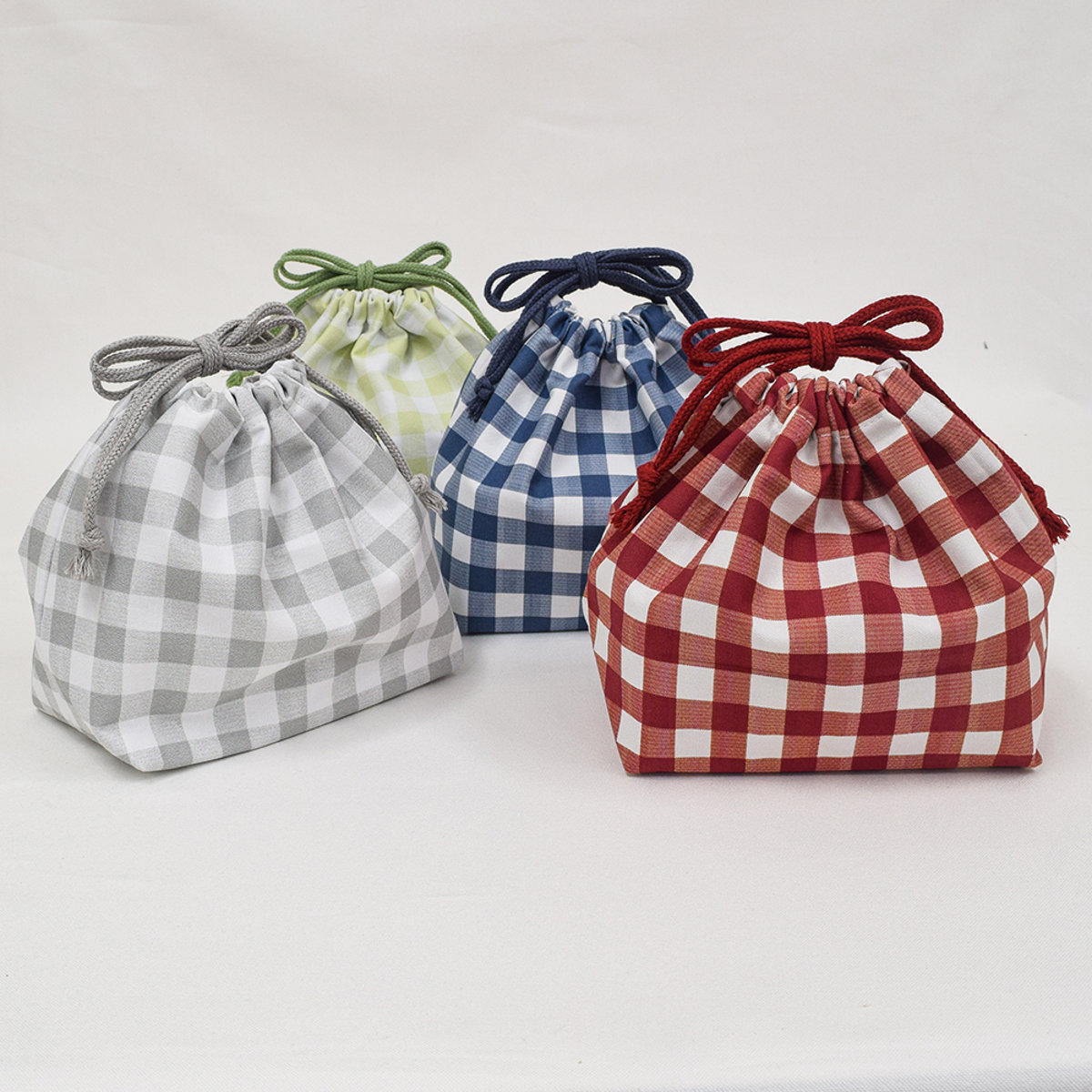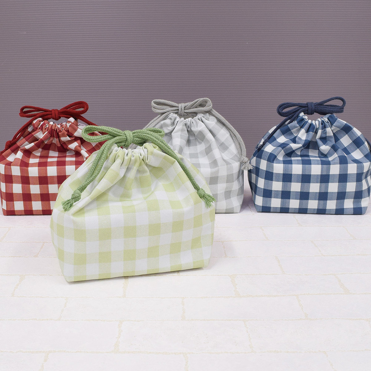 お子さまから大人まで使えるチェック柄が人気のシンプルなランチ巾着です。内側は保冷をサポートするシルバーコーディングが施されているので、保冷剤と一緒に使えば、夏場のお弁当も安心して持ち運べます。