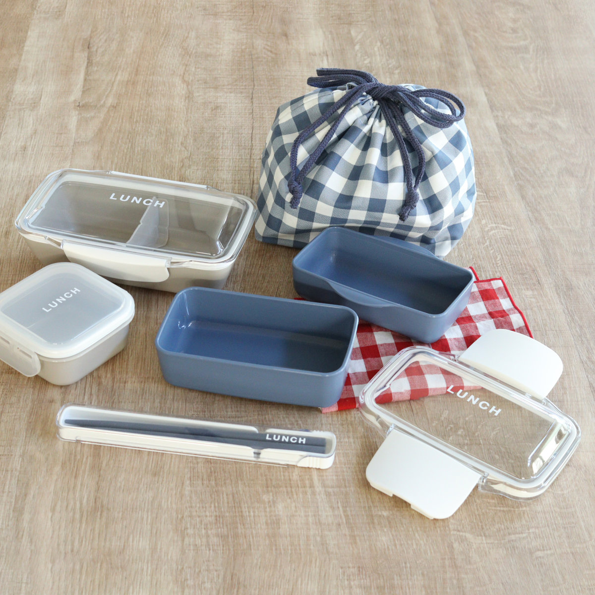 ベーシックなデザインで使いやすいと人気の「time for LUNCH」シリーズには、同じ柄のランチクロスや合わせやすいシンプルなカラーのお弁当箱や箸箱がそろっています。
