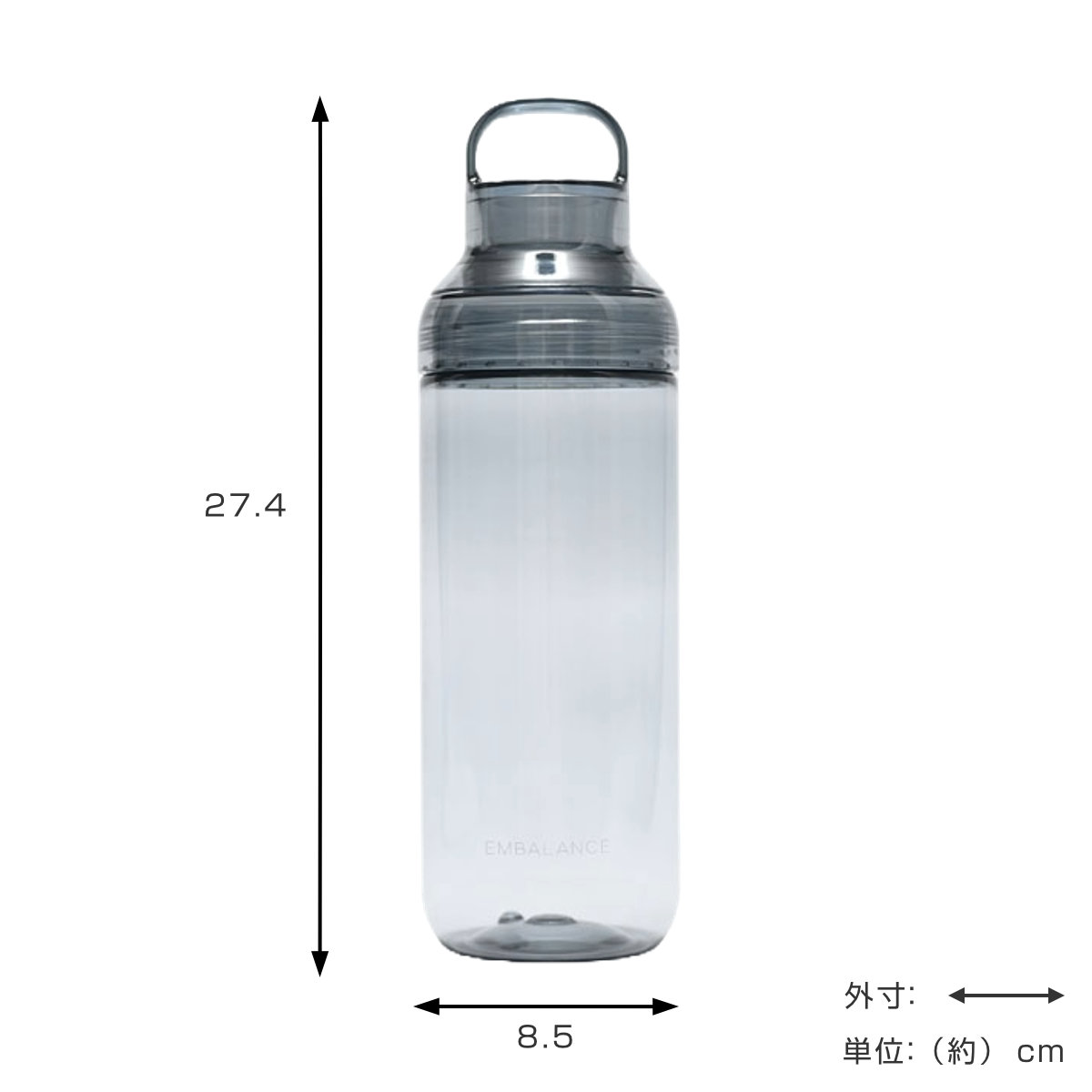 | サイズ | 約 高さ27.4(cm) 直径:約 8.5(cm) 飲み口の口径:約 4.5(cm) ボトル本体の口径:約7.3cm |