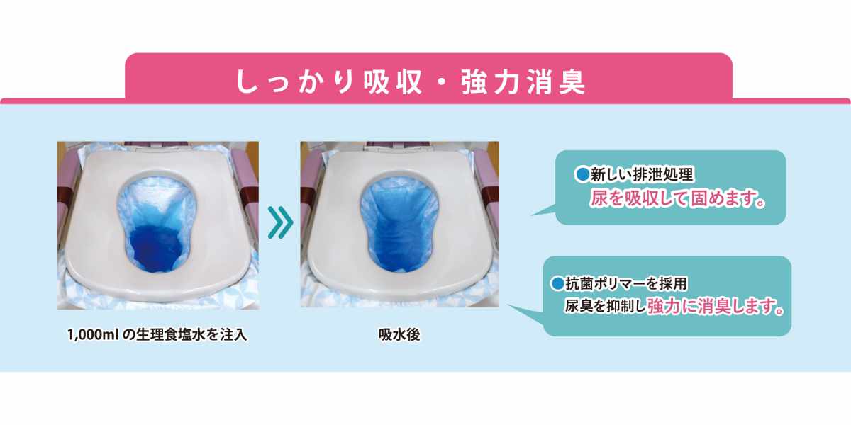 ●ポータブルトイレにぴったり設置でき、尿や便をしっかりキャッチするポータブルトイレシートです。