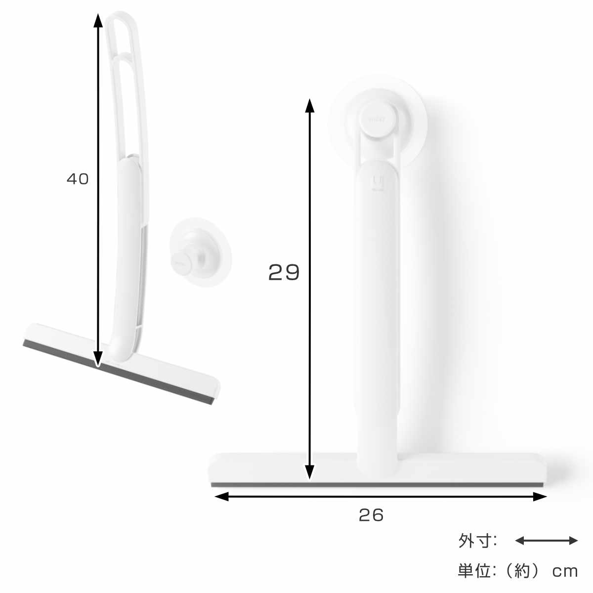 浴室の壁や鏡をカビや水垢から防ぎ、綺麗な状態をを保つスクイージーです。窓ガラス、壁、浴槽、鏡などお風呂の様々な場所にご使用いただけます。