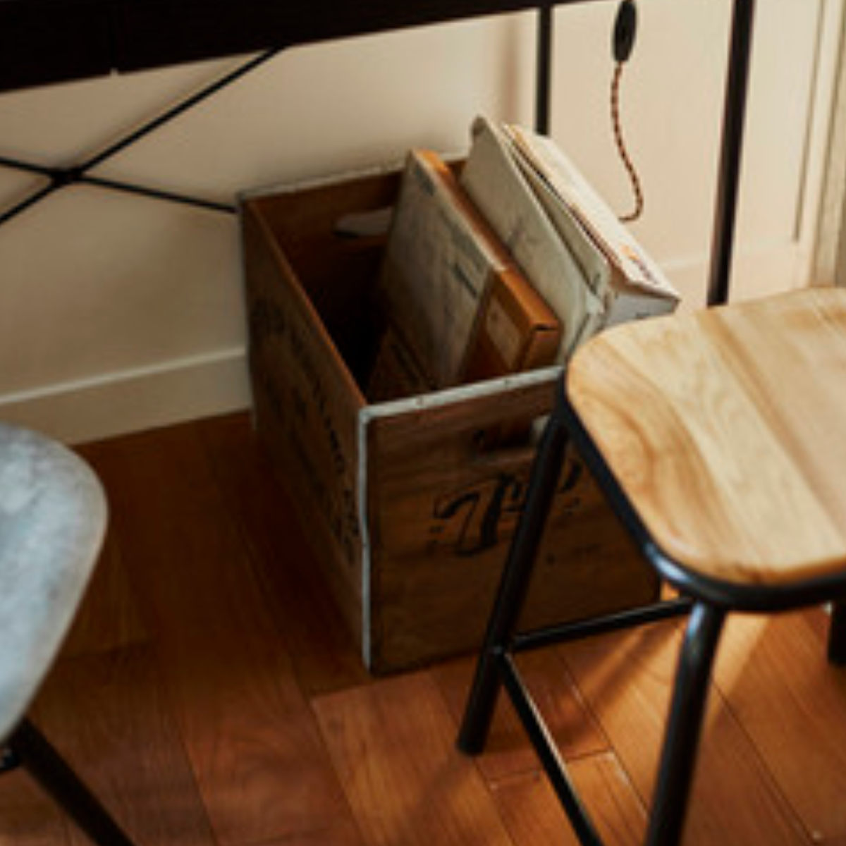 少しかすれたヴィンテージ風の加工がアクセントになっています。海外の農園や市場で使われていた木箱のような雰囲気を演出します。