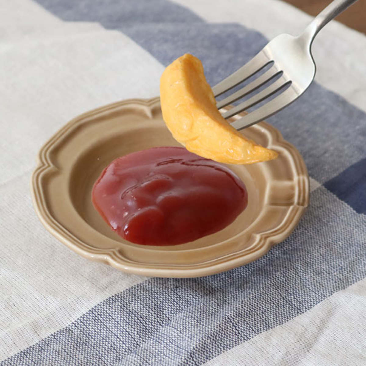 シンプルで使い勝手のよい小皿です。取り皿としてはもちろん、タレやソースを入れたり、チョコレートやクッキーなどの小さなお菓子をのせたりと、幅広い用途で活躍します。