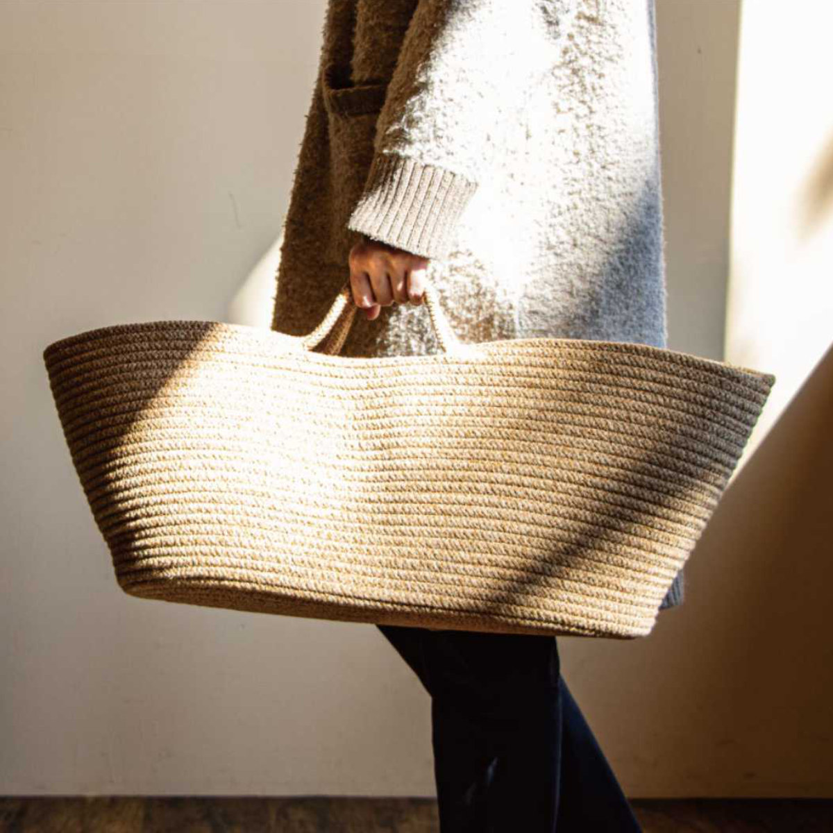普段使いのバッグからお部屋の収納・ランドリーバックとして使えるロープバスケットです。コットンならではのやさしい手触りとシンプルな製造方法だからこそ生まれた独特の量感が特徴です。マガジン収納・新聞ストッカーとしてもオススメです。