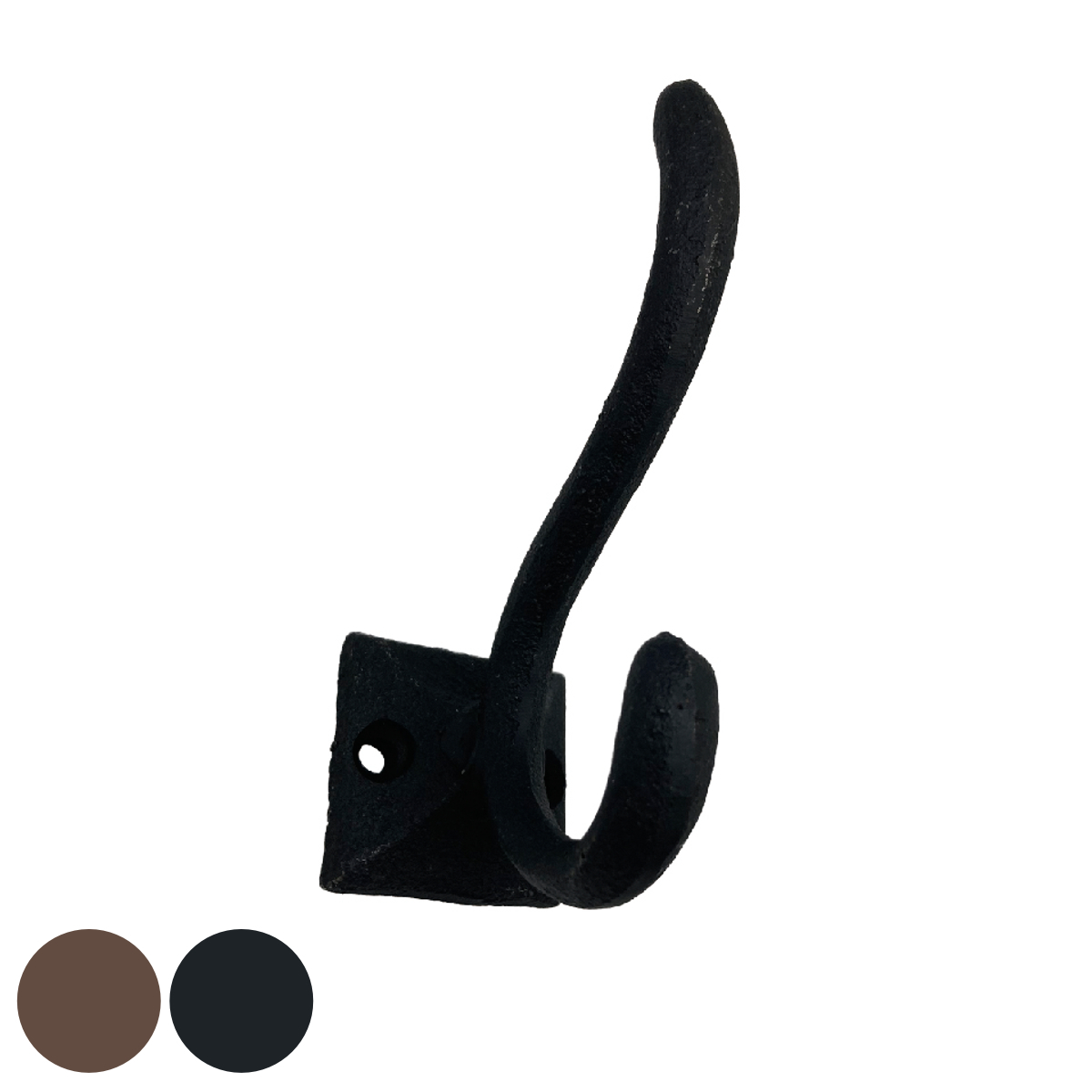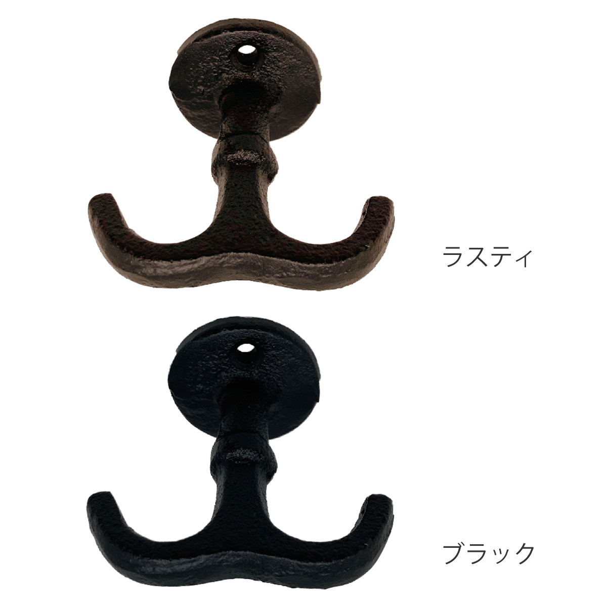 クラシックな雰囲気漂うアンティーク調のアイアンフックです。重厚感のある質感と味わい深いデザインが、お部屋のインテリアをワンランクアップさせます。複数のアイテムを同時に掛けられるダブルフックで、実用性とおしゃれを兼ね備えたアイテムです。
