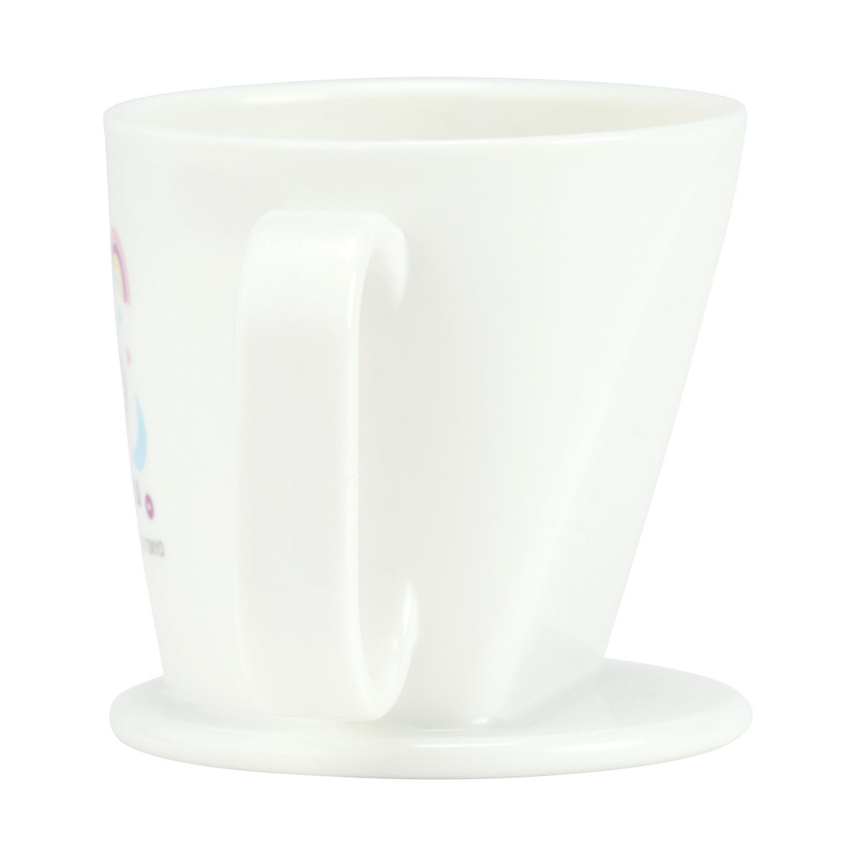 コップの側面が斜めになっているので少しの傾きで飲む事ができます。両手ハンドル付きで持ちやすいので、小さなお子様の初めてのコップにピッタリです。