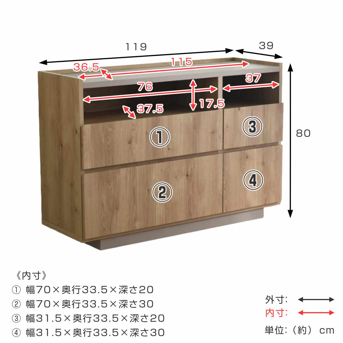 北欧モダンスタイルの上品なチェスト 幅119cm