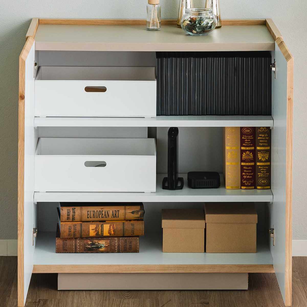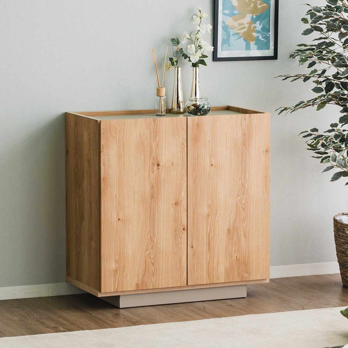 北欧モダンスタイルにグレージュの色合いをアクセントにしたキャビネットです。優しい風合いの木目調デザインが、シンプルながら上品で落ち着いた空間を演出。リビングや寝室など様々な空間でお使いいただけます。