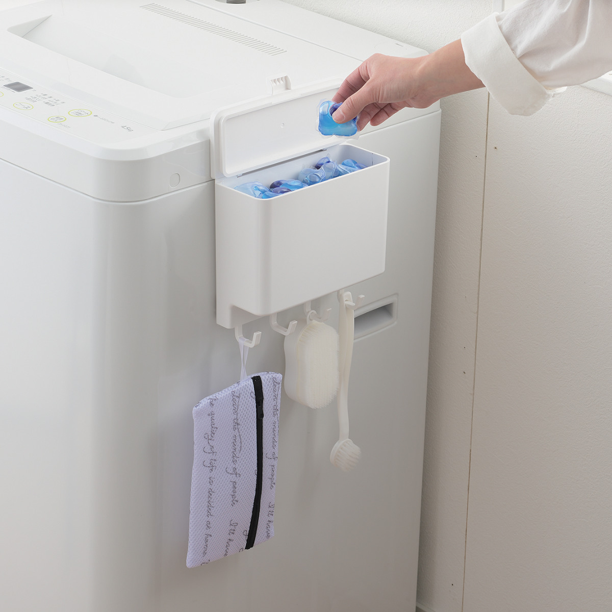 ●洗濯洗剤ボールや洗濯ネット、洗濯バサミなどを収納できます。