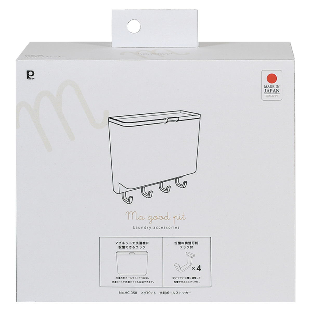 ●マグネットで簡単に取り付けができるフック付き洗剤ボールストッカーです。