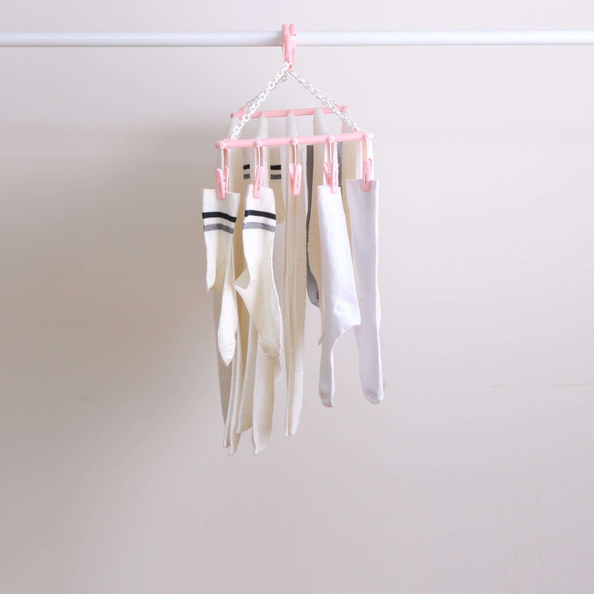 側面にはピンチが左右5個ずつ付属しています。タオルが落ちないようにしっかりと留めておくことができます。また、靴下やハンカチ等の小物も同時に干すことができるので毎日のお洗濯に役立ちます。
