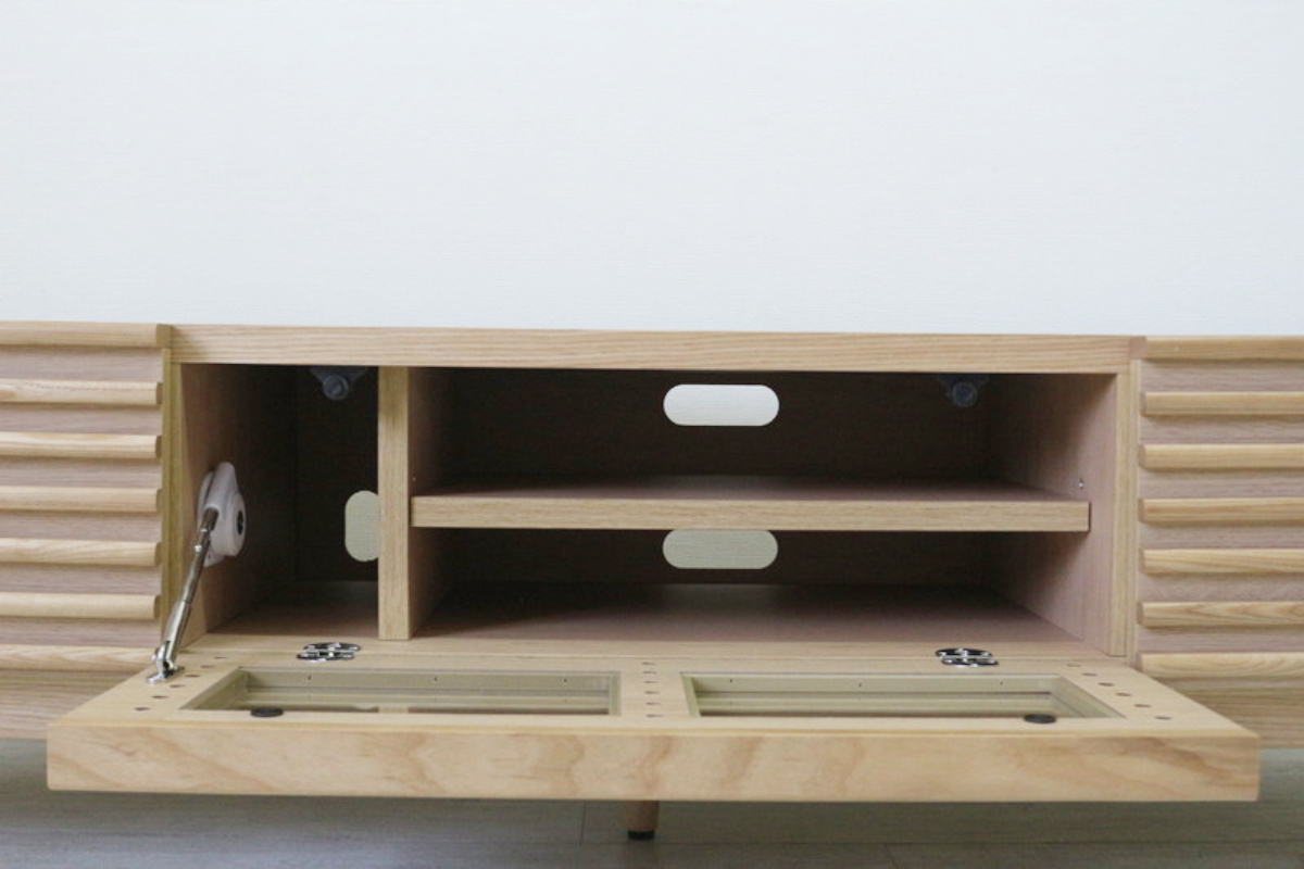 | 材質 | 天板・前板:天然木工芸突板 側板:プリント紙化粧繊維板 ルーバー:無垢 脚:天然木 仕上げ:ウレタン塗装 |