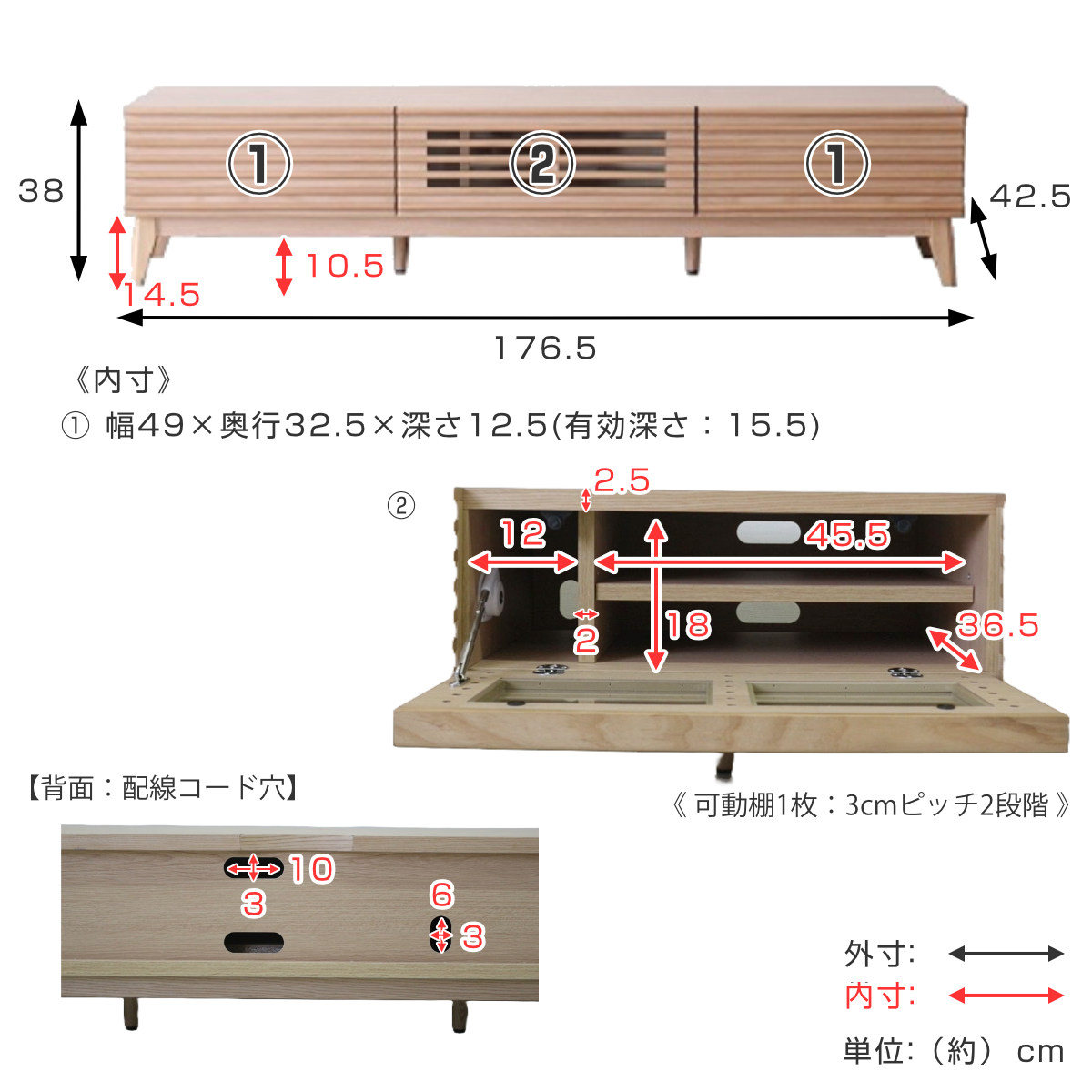 | サイズ | 約 幅176.5×奥行42.5×高さ38(cm) |