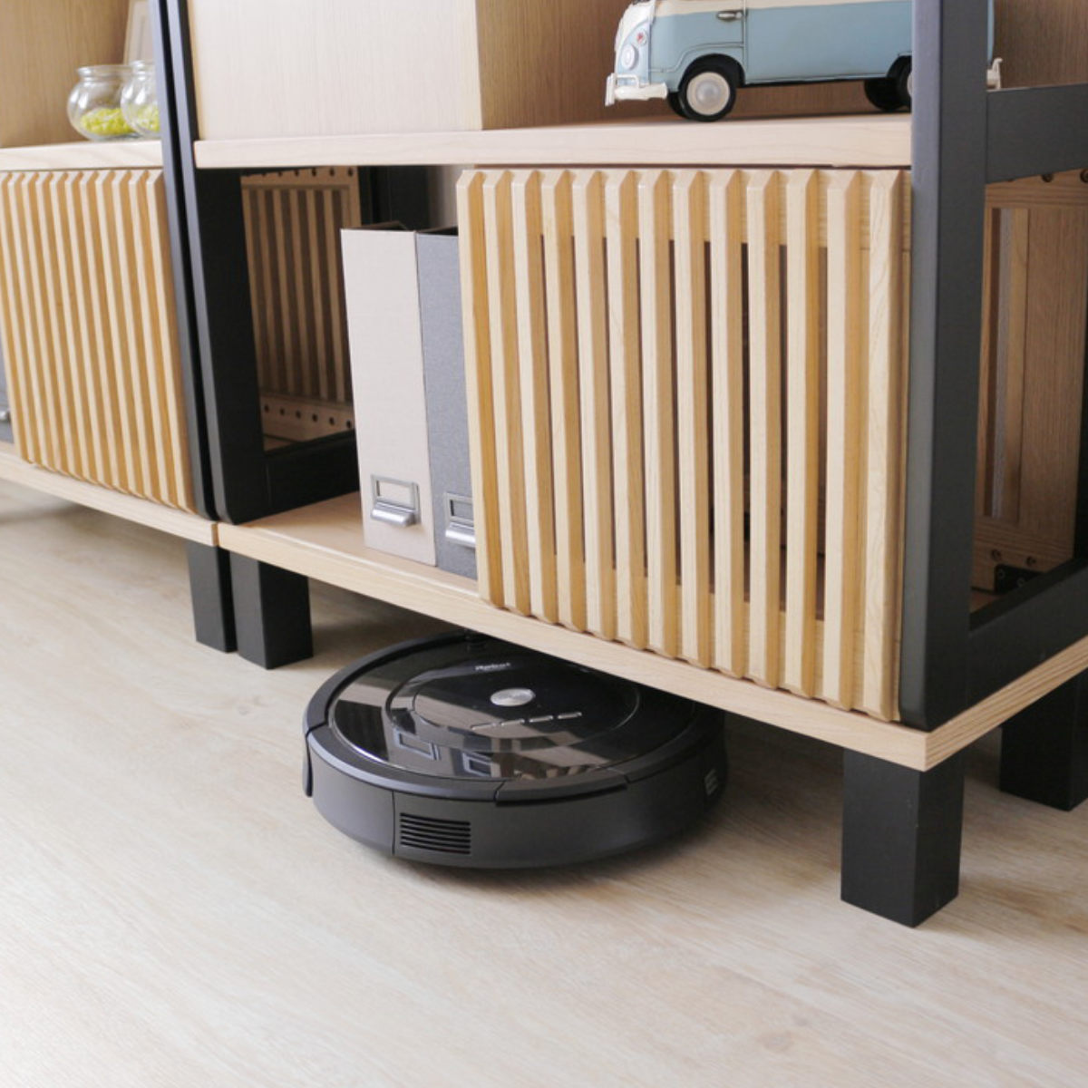 全体を引き締めるブラックカラーの脚部は、高さ約12.3cm。一般的なお掃除ロボットが通れる高さ設計なので、いつでも清潔を保つことができます。