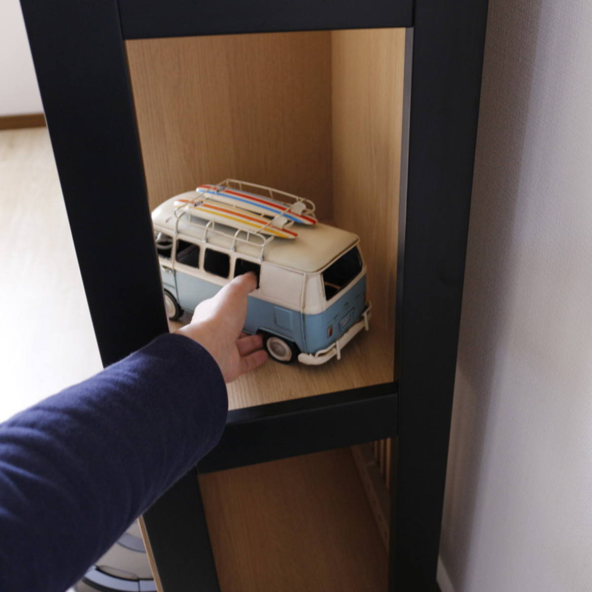 正面・背面どちら側も同じようにお使いいただける仕様なので、間仕切り収納としてもぴったりです。空間を間仕切って、メリハリのあるお部屋に◎