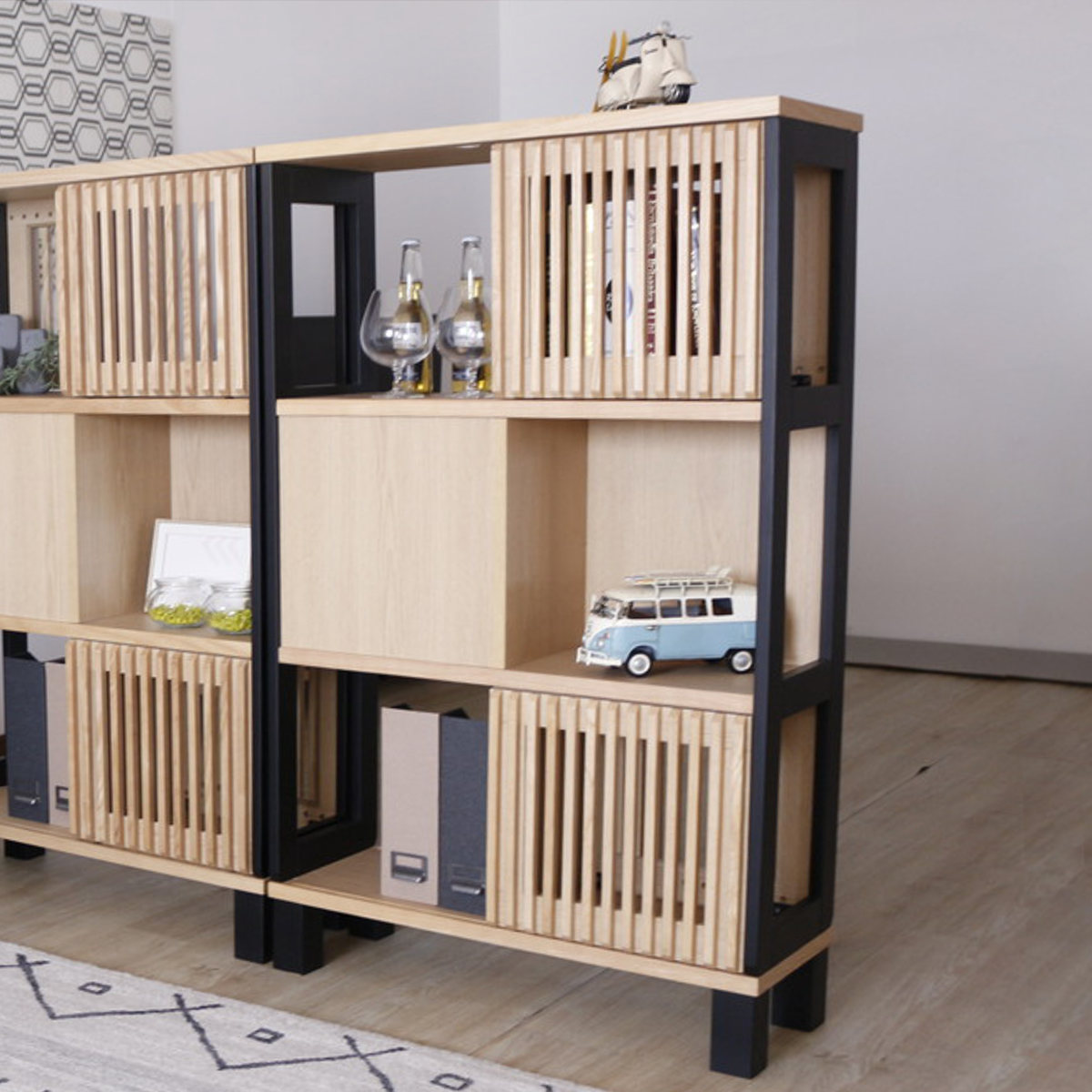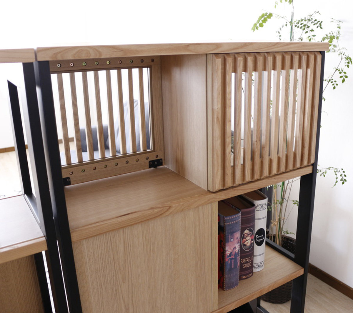 棚はA4サイズに対応しているので、デスクサイドやリビングで雑誌や書類の整理にも最適です。扉のルーバーデザインが、さりげなく中身を隠してくれます。