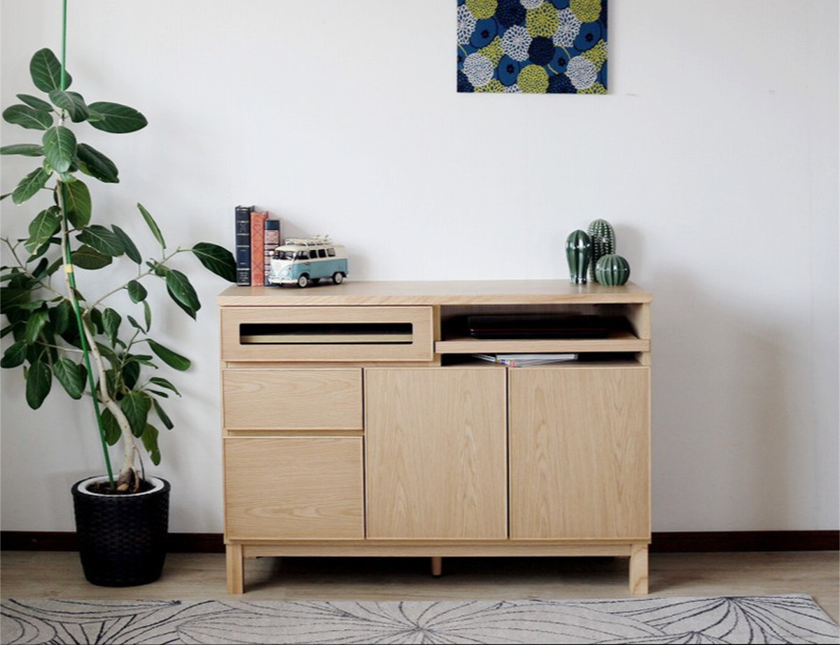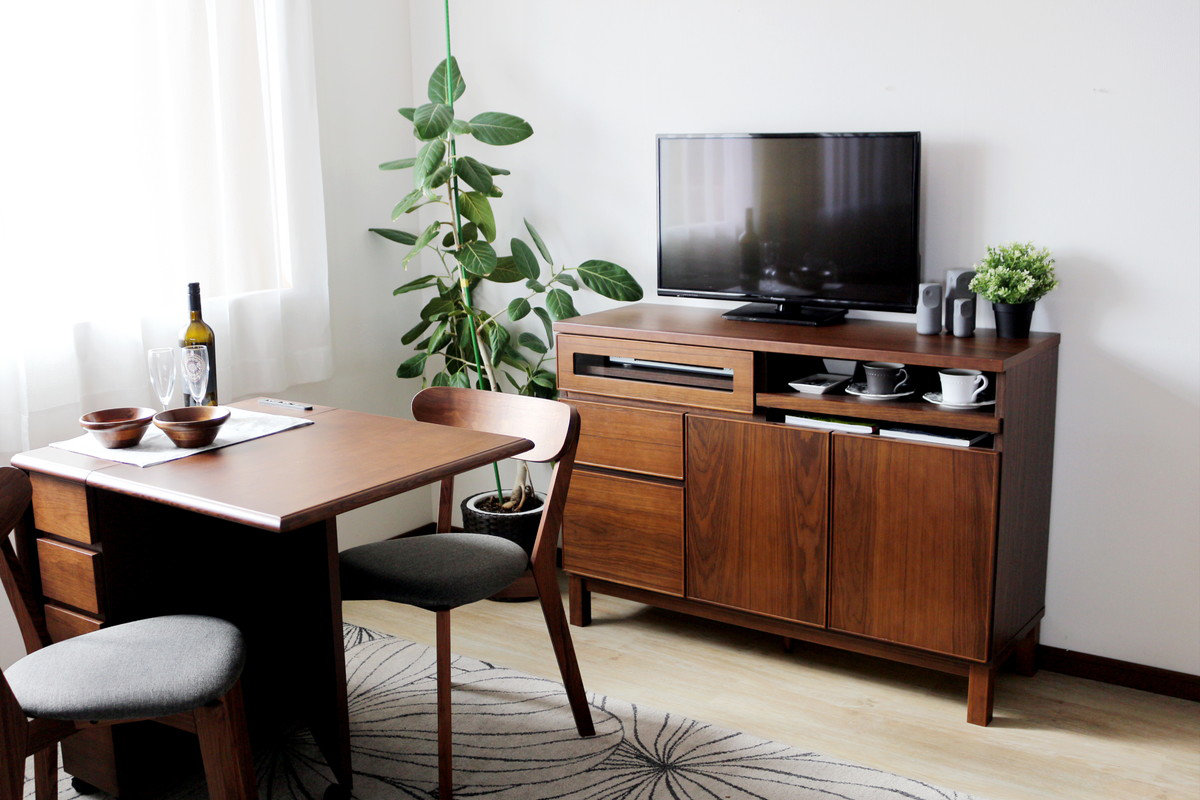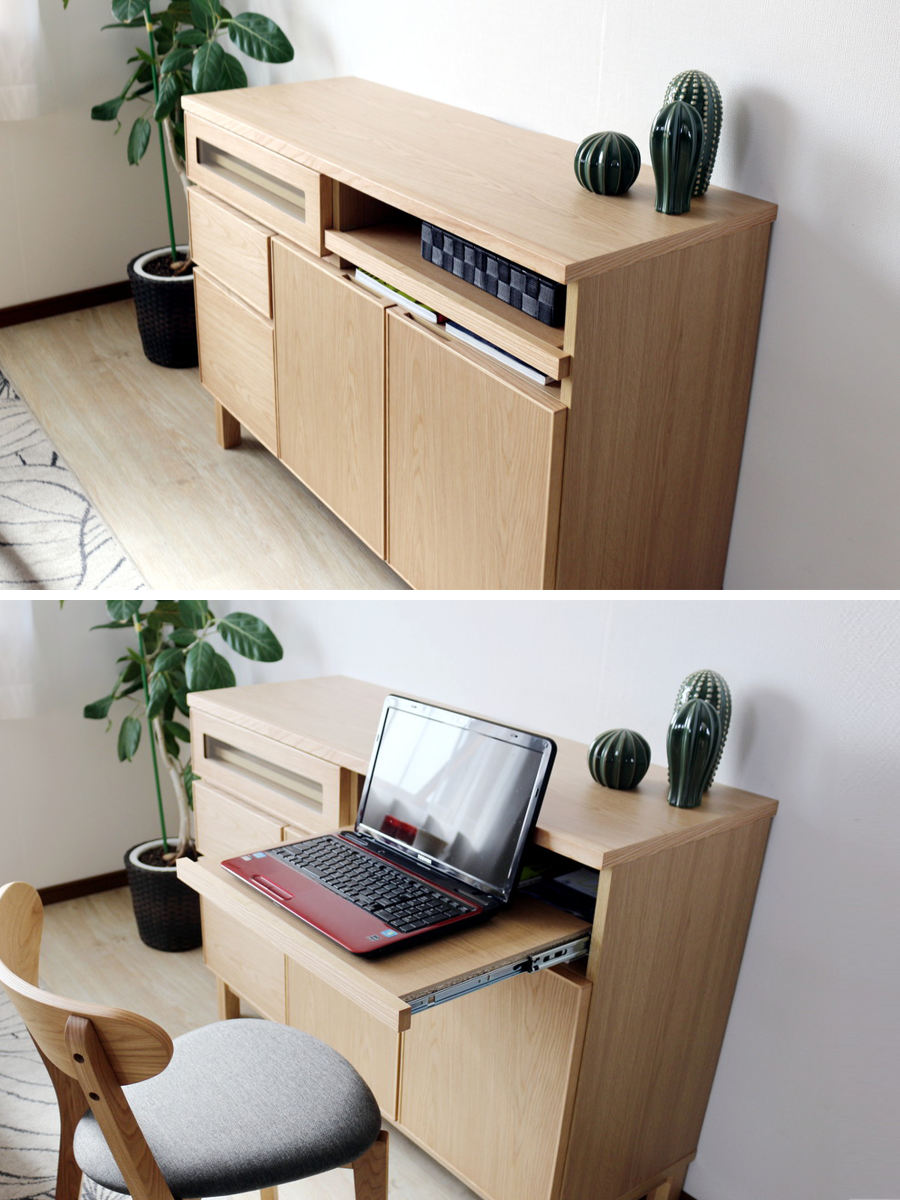収納力抜群、デスクとしてもTV台としても使えるサイドボード