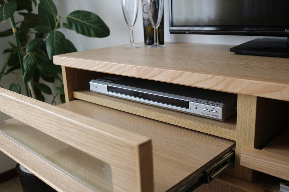 ダイニングや寝室に合うハイタイプのテレビボードとしても。デッキなどのAV機器を設置できるスペースの棚板は取り外すことができるので、引出し収納として使用できます。