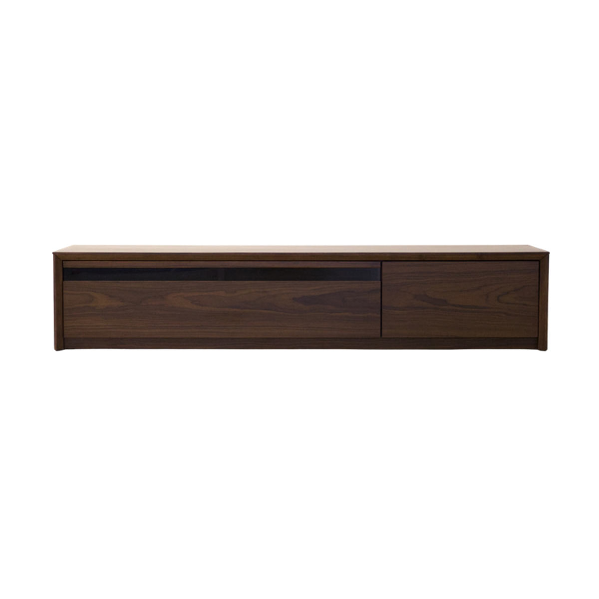 環境に配慮したFSC認証を取得した天然木工芸突板を使用したテレビボードです。シンプルでモダンな印象でありながら、天板と側板にボリュームを持たせた安定感のあるデザイン。高さ30cmのロータイプなので、大型テレビを設置しても見やすいです。