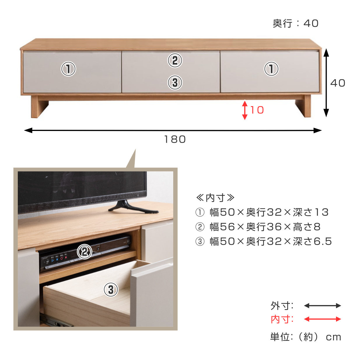 | サイズ | 約 幅180×奥行40×高さ40(cm) |