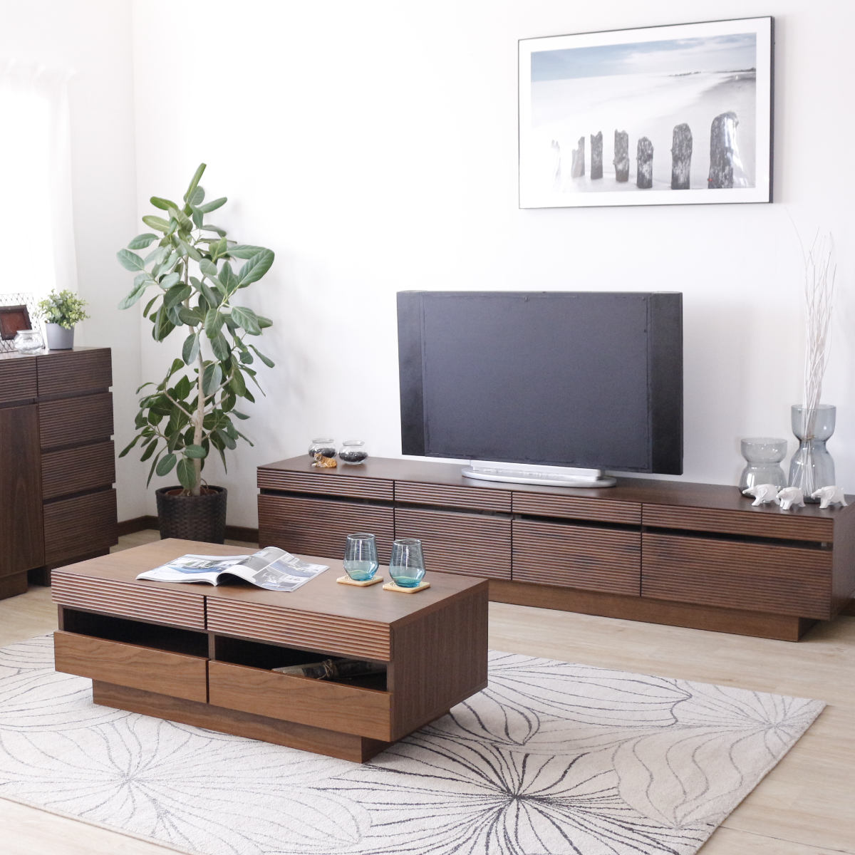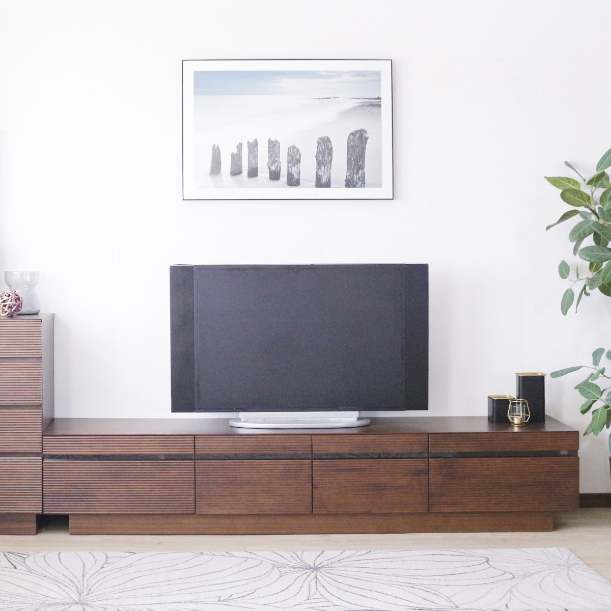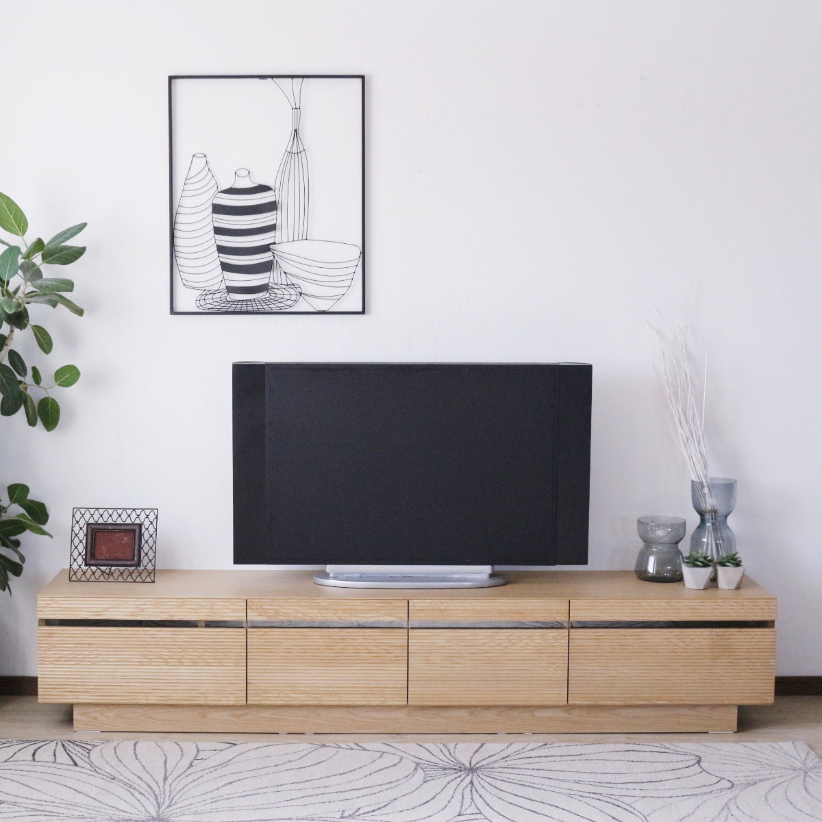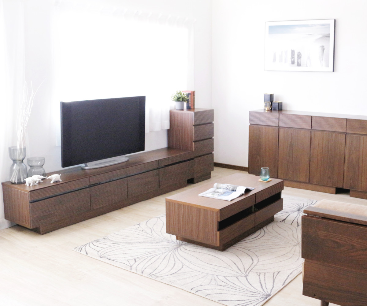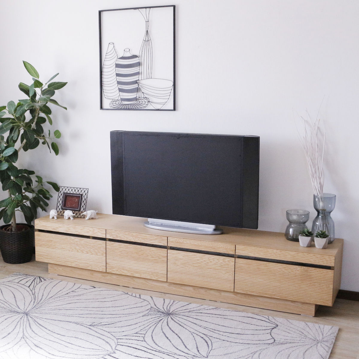 天然木の風合いを最大限に生かしたシャープなTVボード