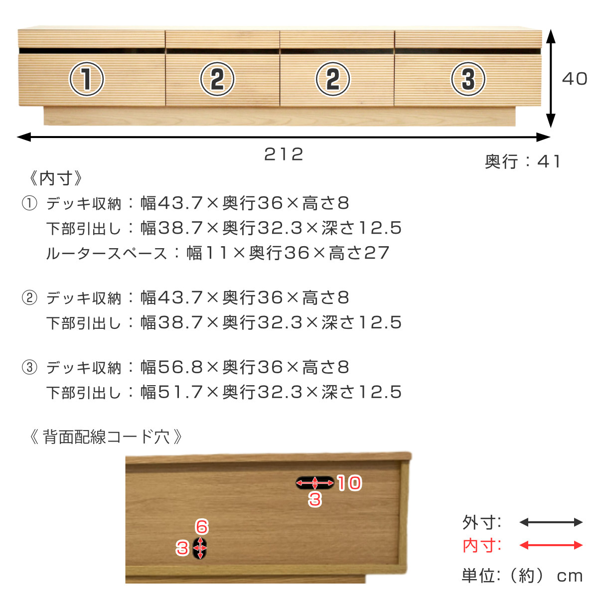| サイズ | 約 幅212×奥行41×高さ40(cm) |