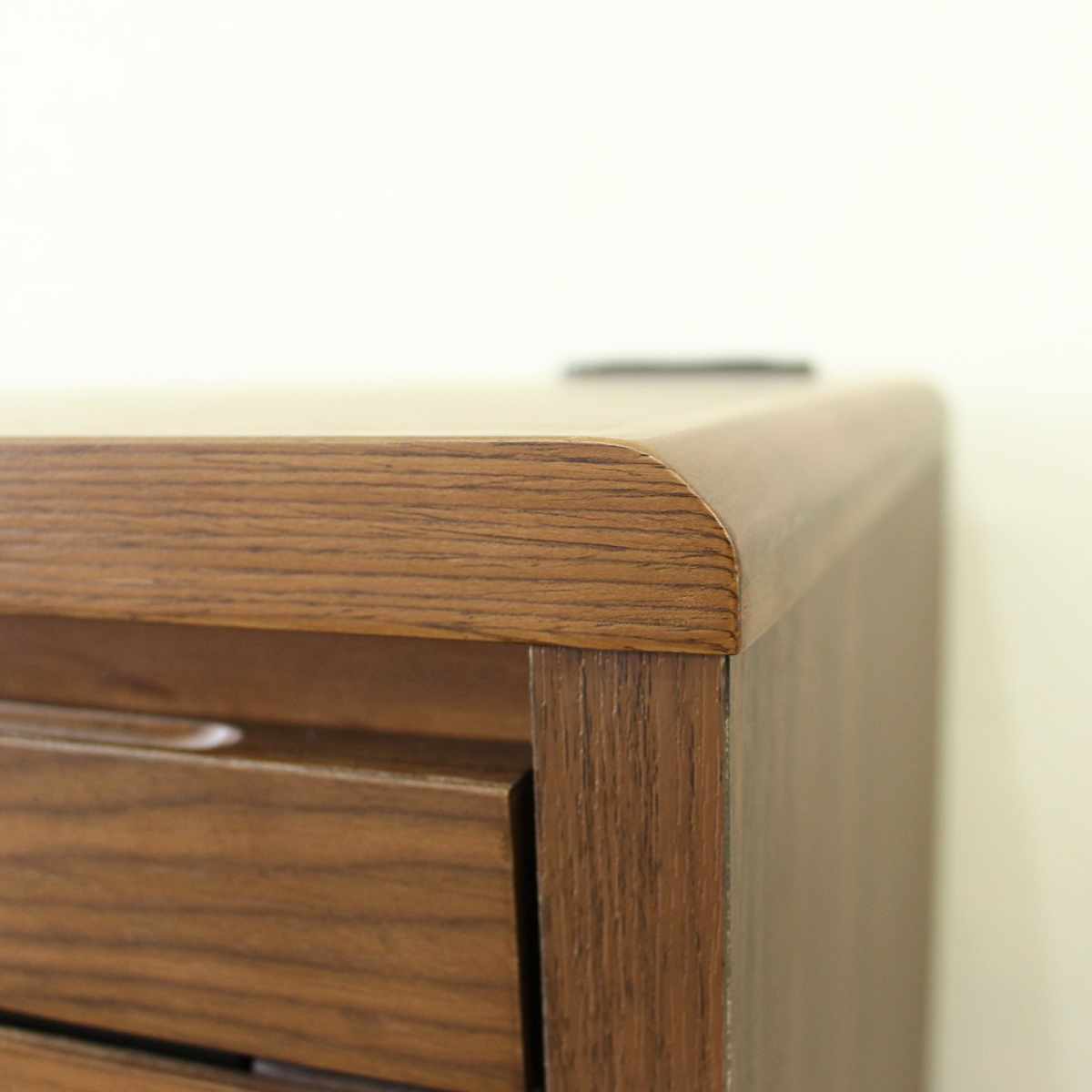 環境に配慮したFSC認証材の天然木工芸突板を使用したテレビボードです。スッキリとしたデザインに木目の美しさが映え、置くだけで上質な空間を作ります。背面は化粧仕上げが施されており、細部まで手を抜かず、丹精込めて製造されています。