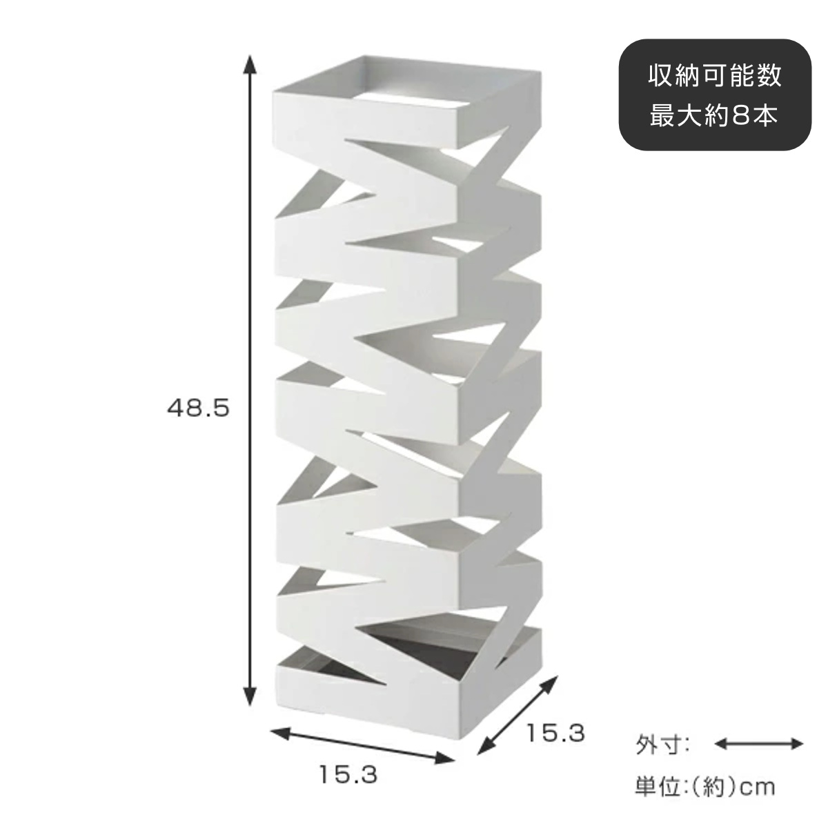 奥行15.3cmのスリムなスクエアタイプです。コーナーに置くと壁にフィットするので、置いても邪魔になりません。最大で約8本の傘を収納できるので、急な来客時も安心です。