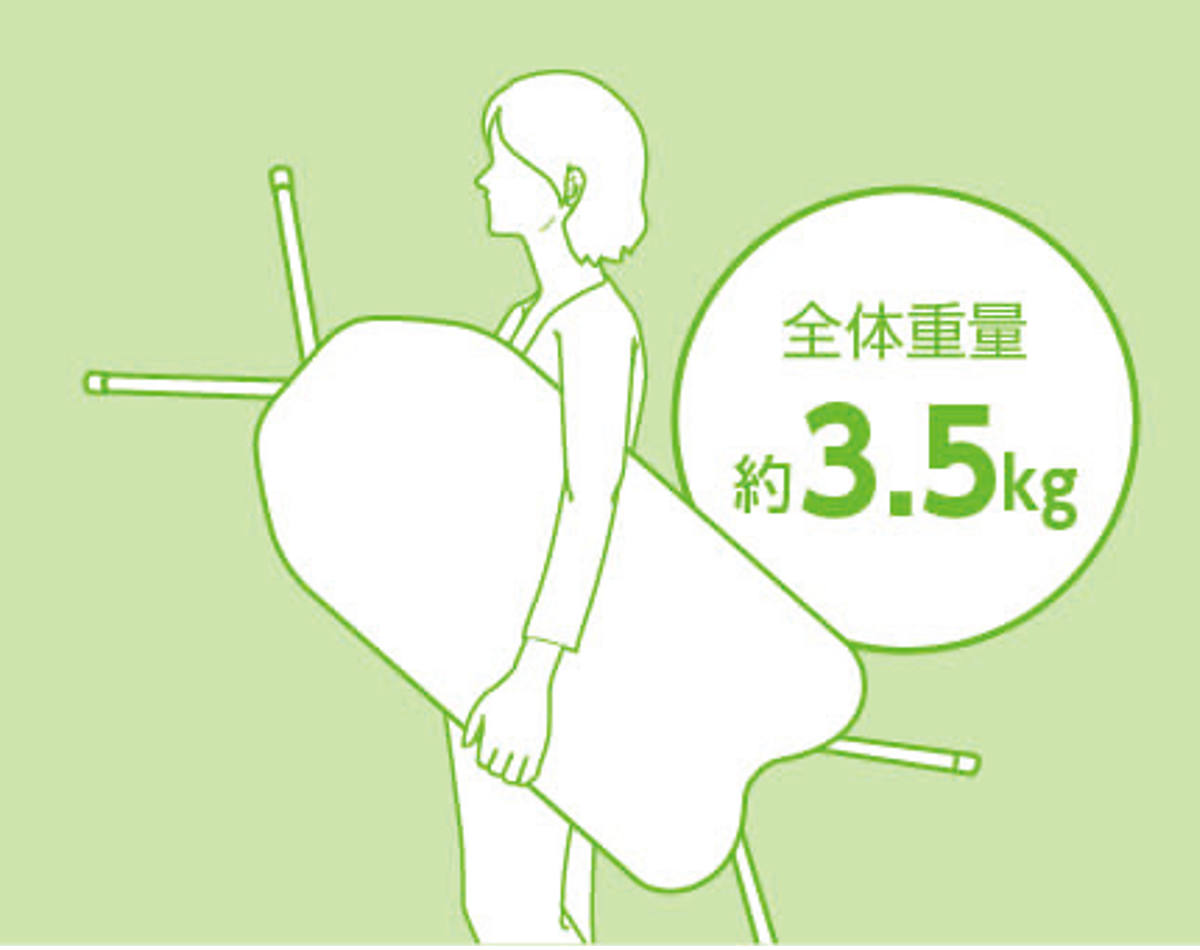 全体重量は約3.5kgと軽いので、作業場所の移動や収納時など持ち運びもラクラク。