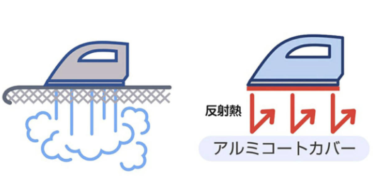 表面のアルミコーティング加工が、アイロン本体からの反射熱を利用して高い熱効率を発揮。素早いアイロン仕上げが可能です。