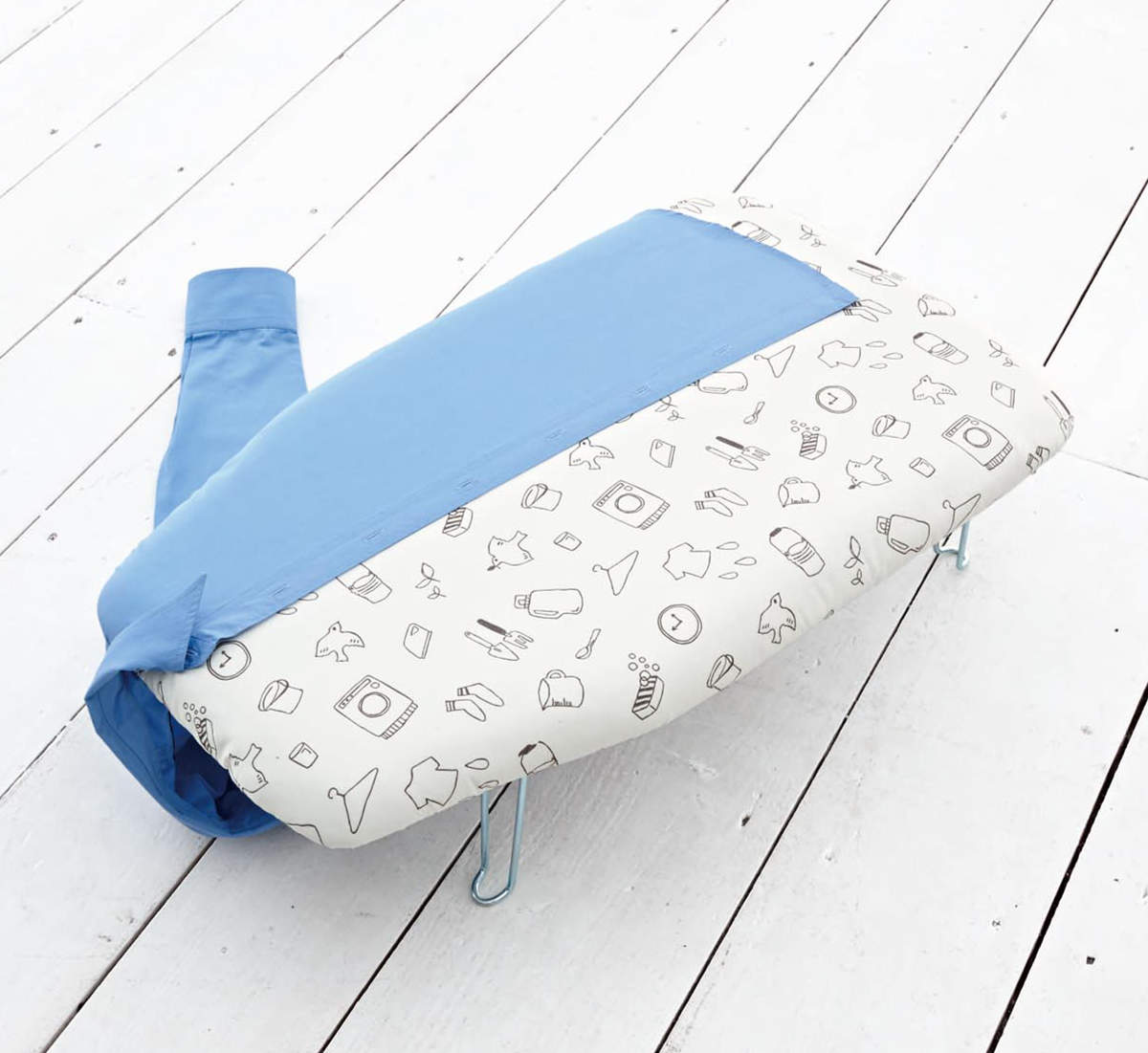 可愛いランドリー柄の座式アイロン台です。落ち着いたデザインで毎日のアイロン掛けがちょっと楽しみになりそうです。