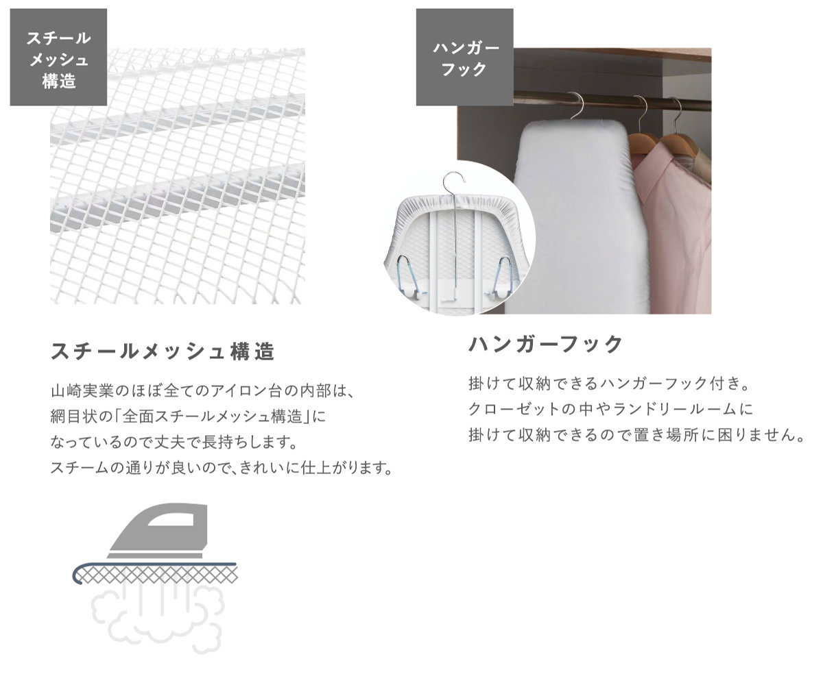 ●スチールメッシュ構造なのでスチームの通りが良くパリッときれいに仕上がります。