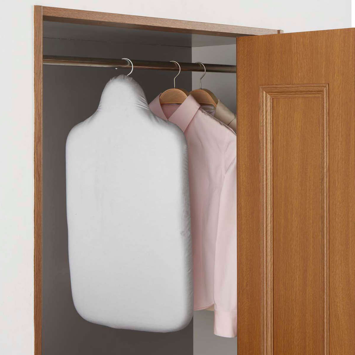 人体形状なので、ぴったりフィットしてアイロン掛けも楽々です。後ろ身頃はシャツを台に着せるようにして、一気にアイロン掛けができます。