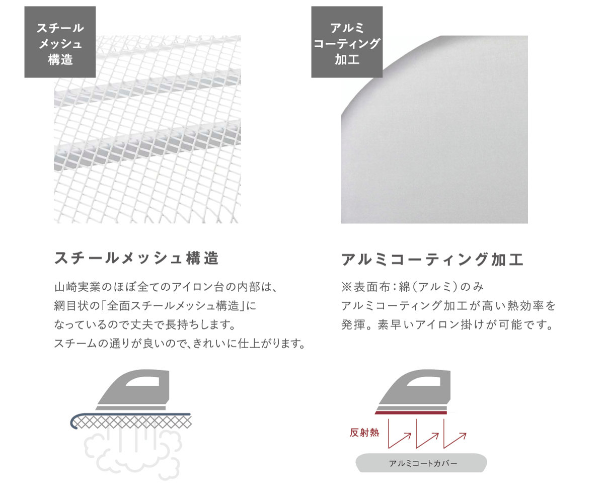 アミ目状になっているので、スチームの通りを良くします。また、スチール製なので丈夫で長持ちです。